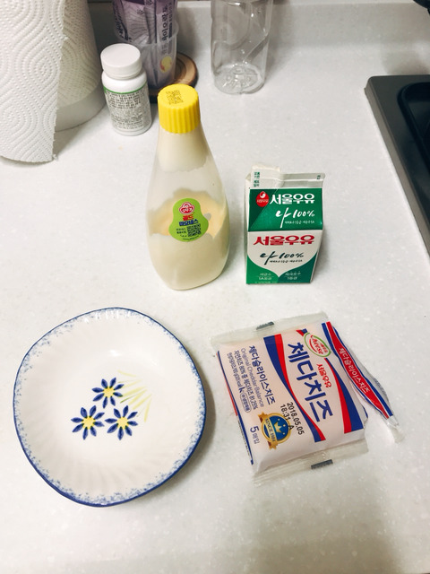 체다치즈. 우유. 마요네즈