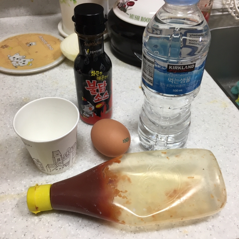 케찹이랑 불닭소스는 선택이고 물대신 우유 가능