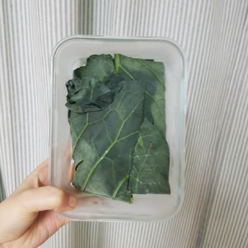 *손바닥보다 좀 크다 싶은 크기의 케일을 6장 정도 넣고 있어!