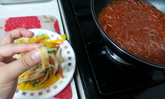 설거지가 귀찮으니 당면 삶았던 후라이팬에 볶을거임