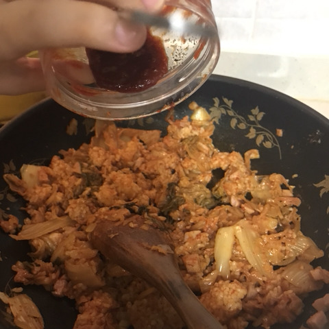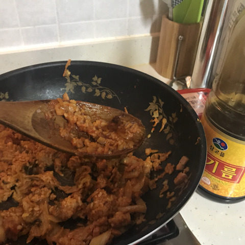 밥넣고 김치국물 세숟가락정도 넣어줘