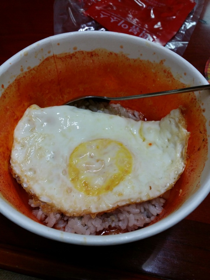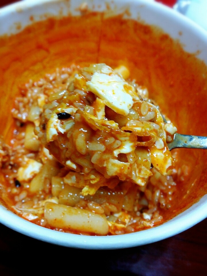 +역시 편의점 떡볶이는 삼감김밥이 있어야할것같은데 내가 집이고 먹으면서 찐거랔ㅋㅋㅋㅋㅋ 집에있는 밥 이랑 계란후라이 하나 들기름 한숫가락 넣고 비벼비벼먹어봤다능.역시 맛있어..........