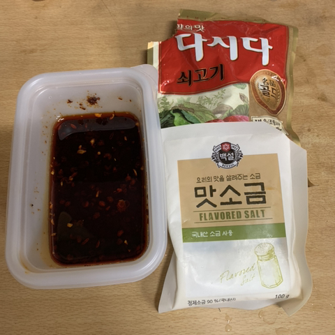 2. 소금과 다시다를 숟가락 1/4정도 양을 넣어주세요~
