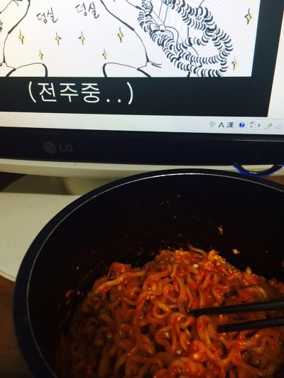 9. 여시 하면서 먹는다. (컴터앞에서 먹으면 엄마한테 등짝 맞으니까 빨리 먹어서 해치우자 끗)