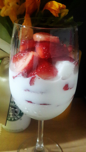 그리고 위에 왕딸기하나를 올리고 연유 촵촵해주면 완성ㅎㅎㅎㅎ