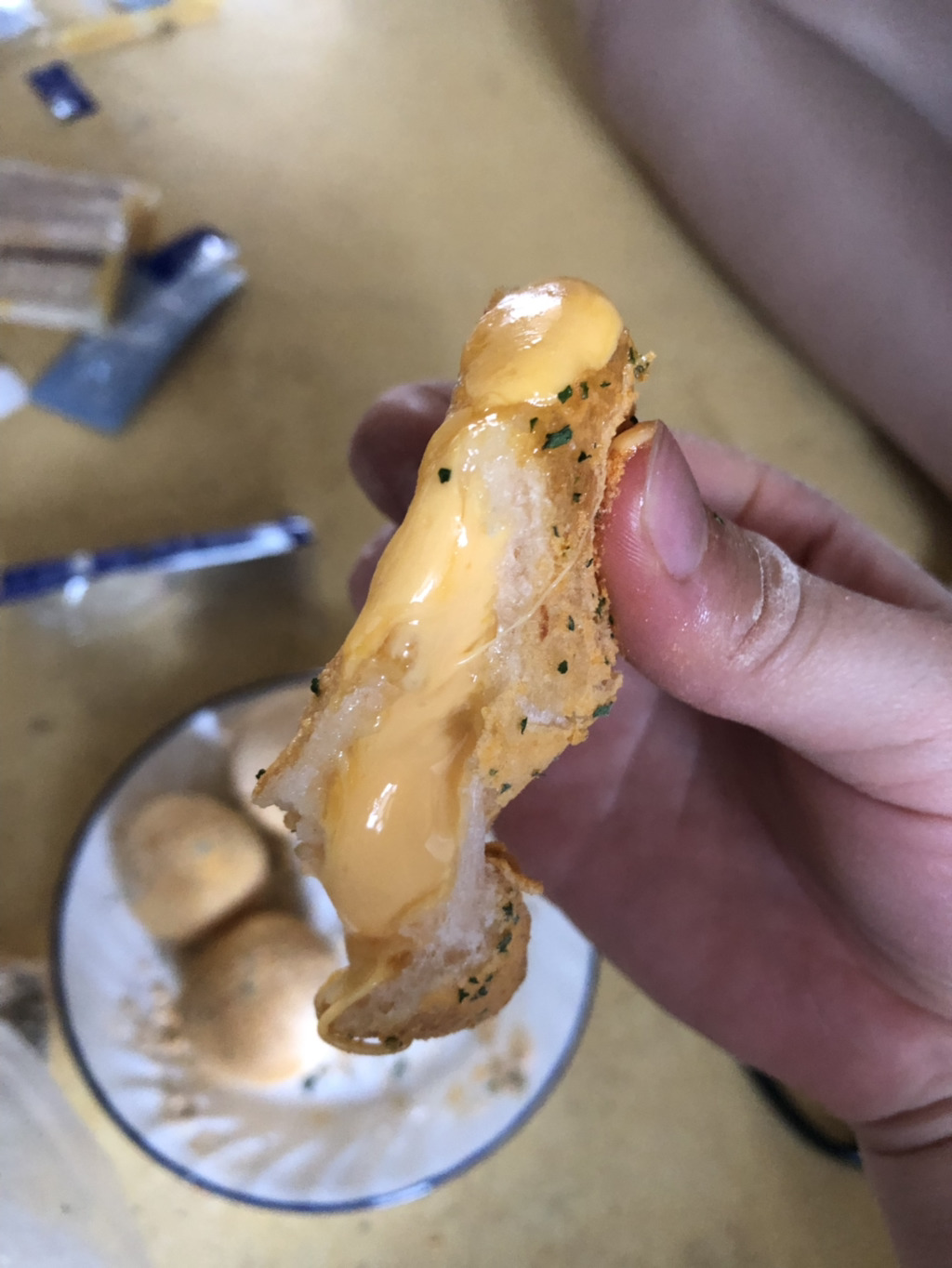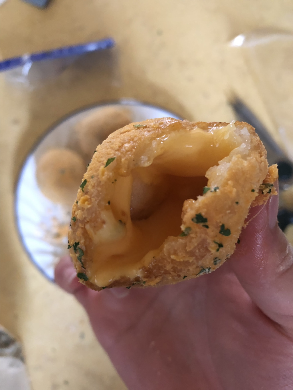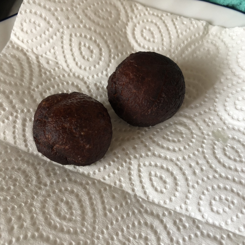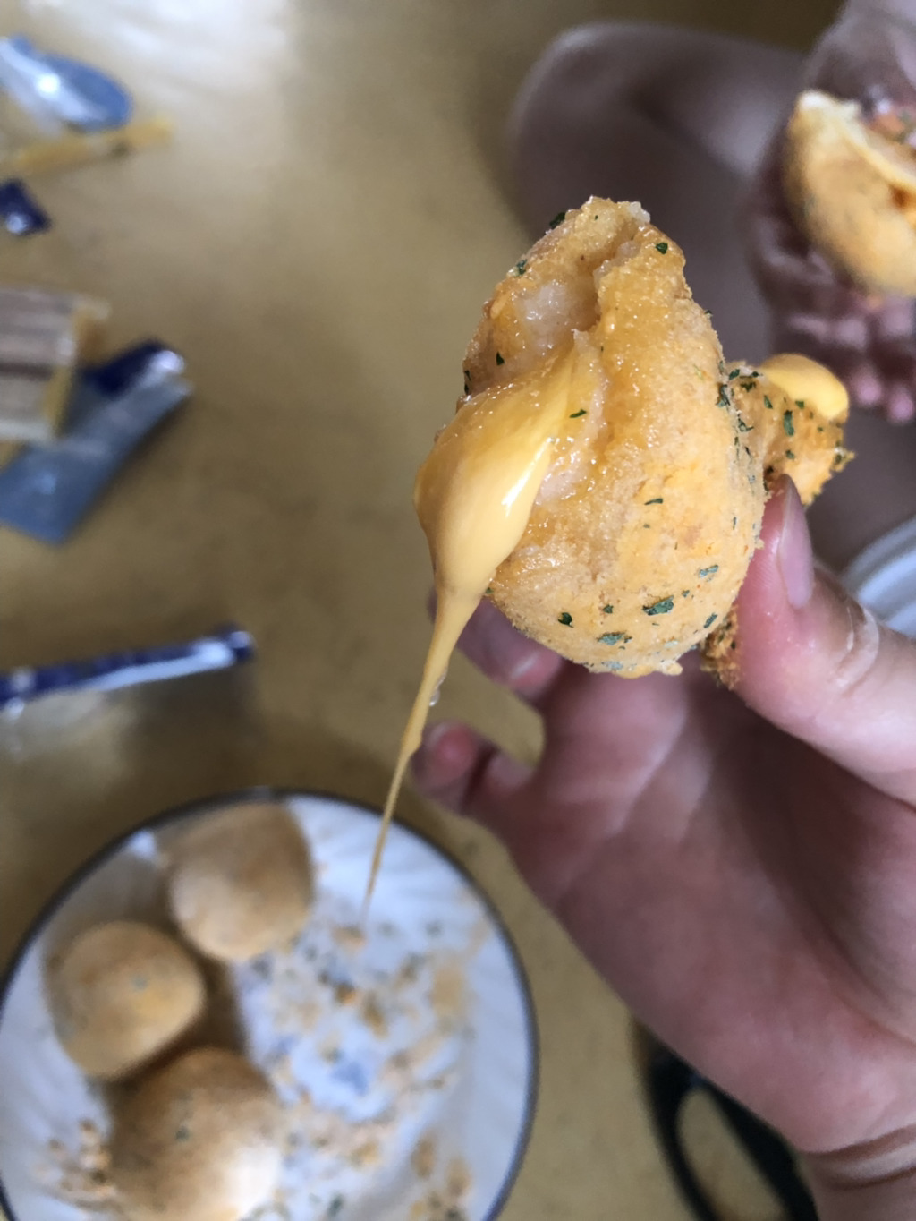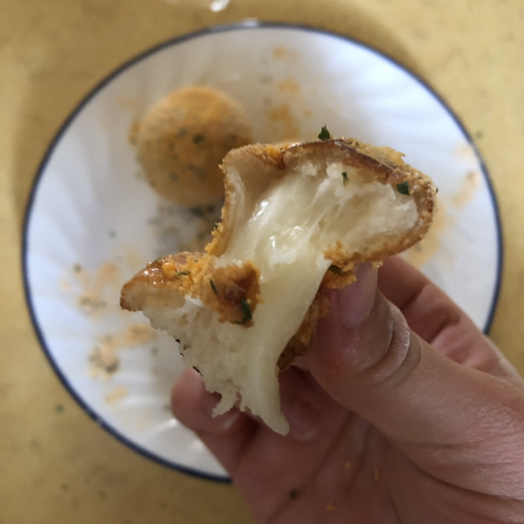 기름의 문제인 거 같아 처음 이 치즈볼을 만들었을 때의 기름을 다시 사왔습니다