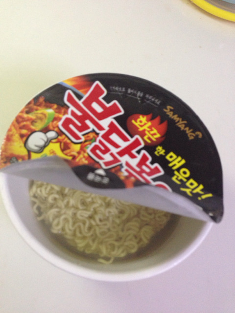 (이때쯤 컵 불닭에 뜨거운 물을 넣어 익힌다)