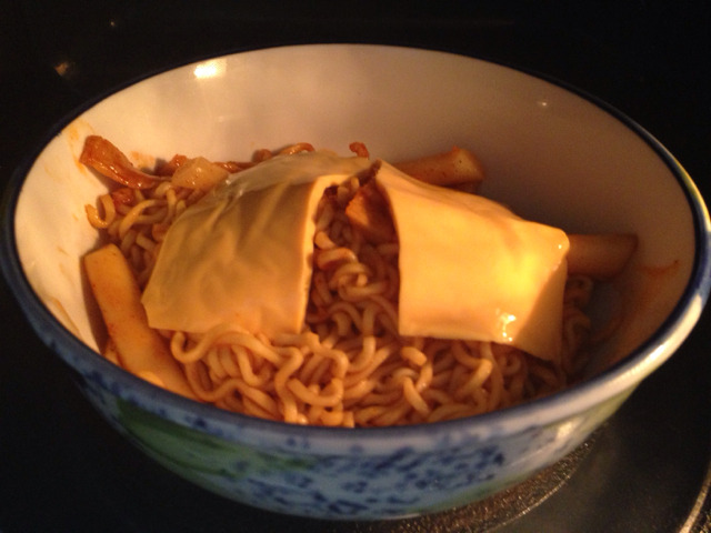 준비물: 불닭볶음면(나는 컵라면 썼어), 떡볶이 떡, 오뎅, 치즈
