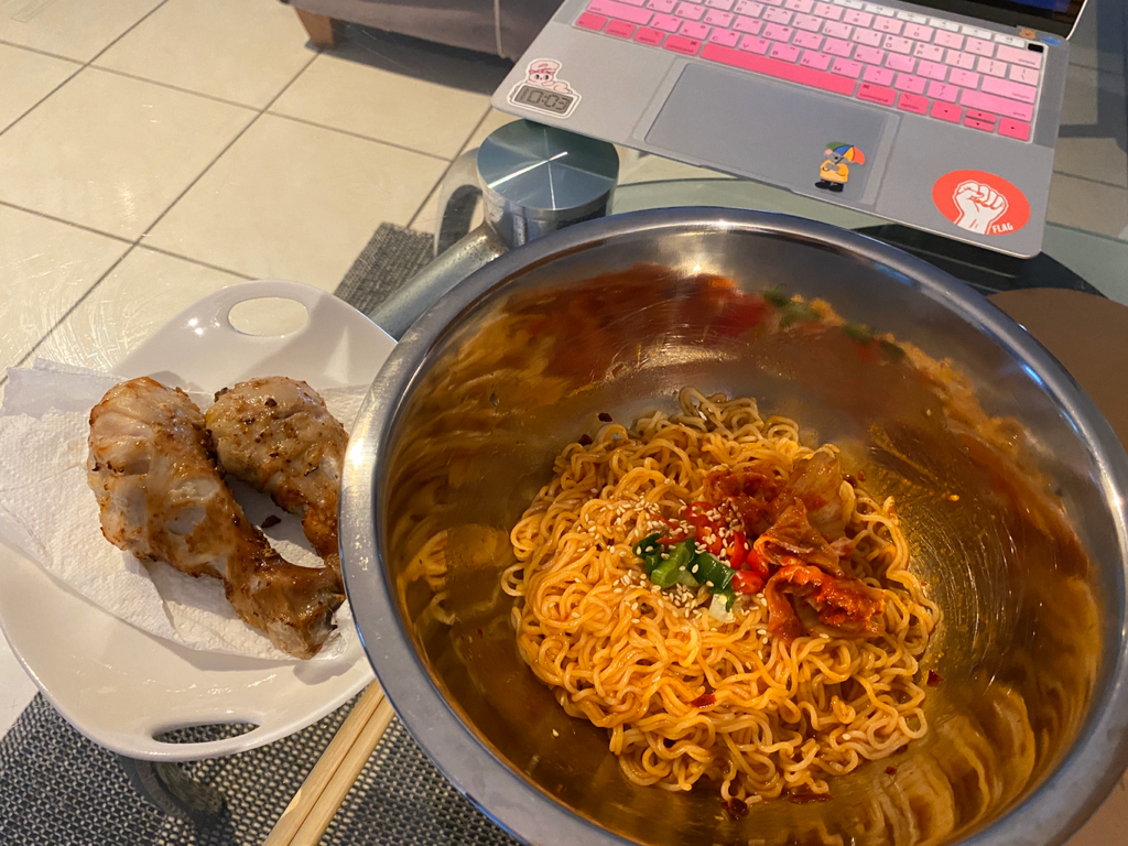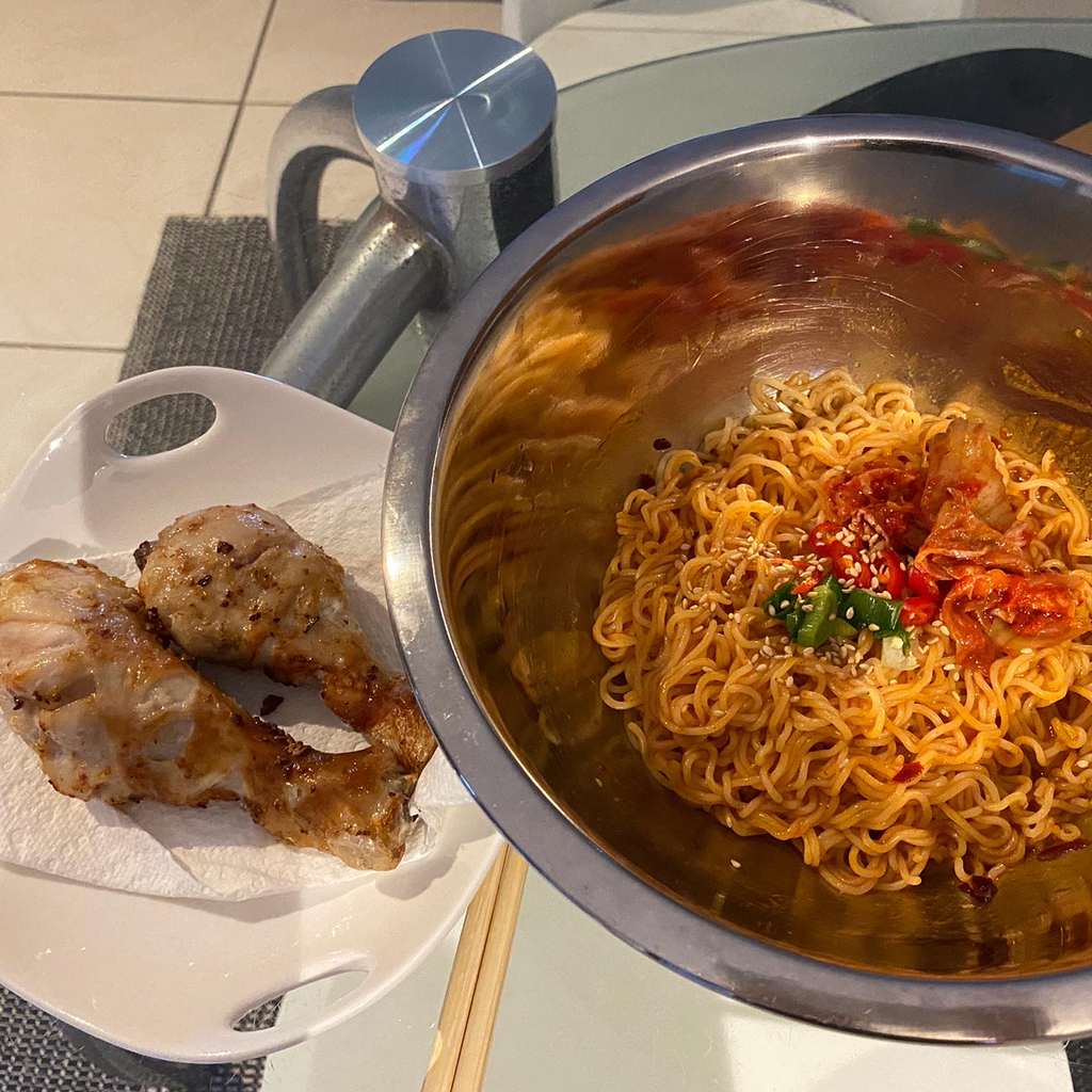 비빔면 + 고기