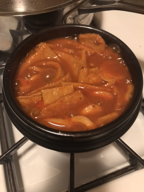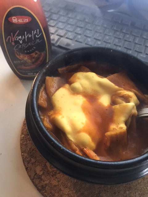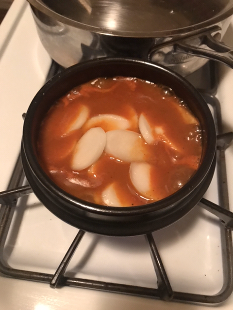 뚝배기 절반정도? 나는 뚝배기를 썼지만 없는 여새들은 냄비 후라이팬 모두 ㄱㅊ 근데 뚝배기를 쓰면 떡이 늘러붙어서 맛있음