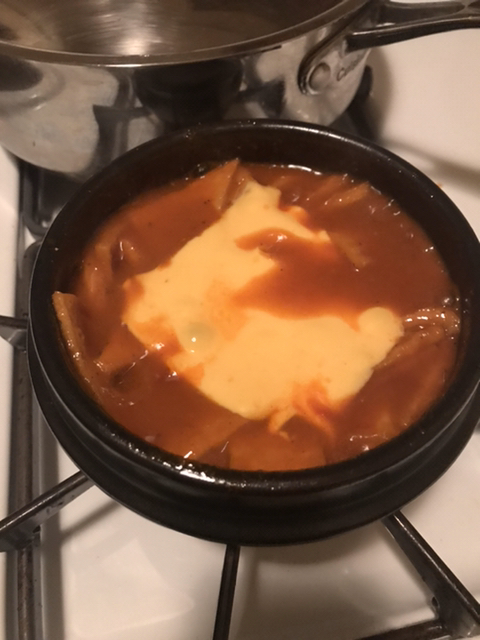 12. 치즈 투척 후 2분만 더 끓이자