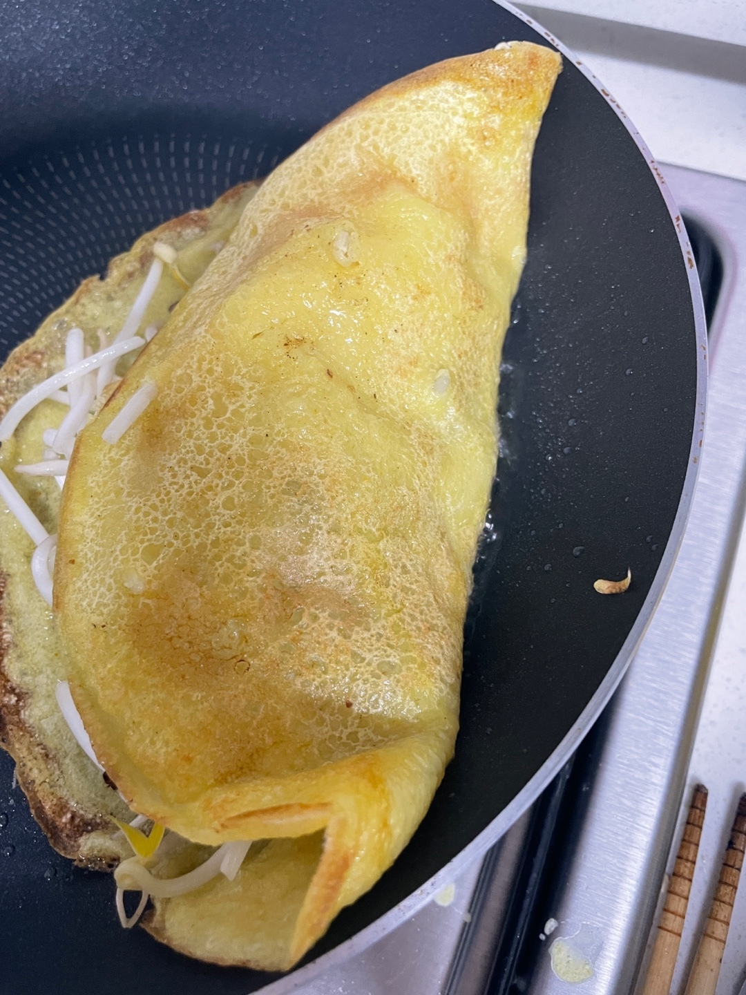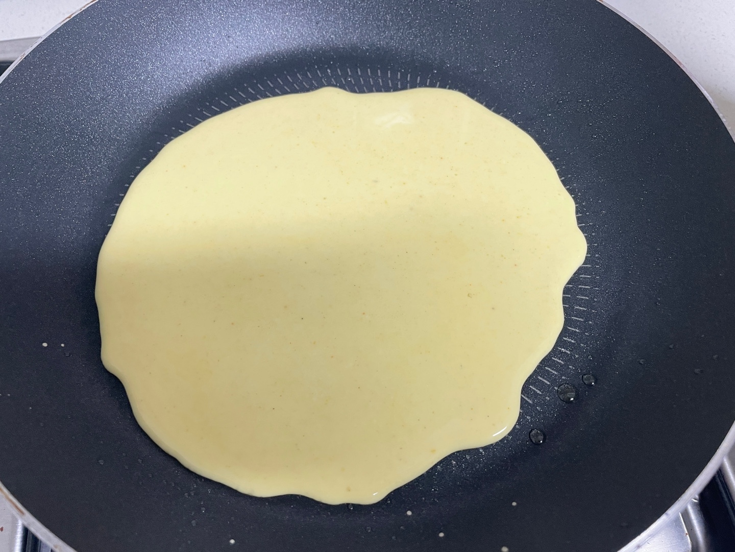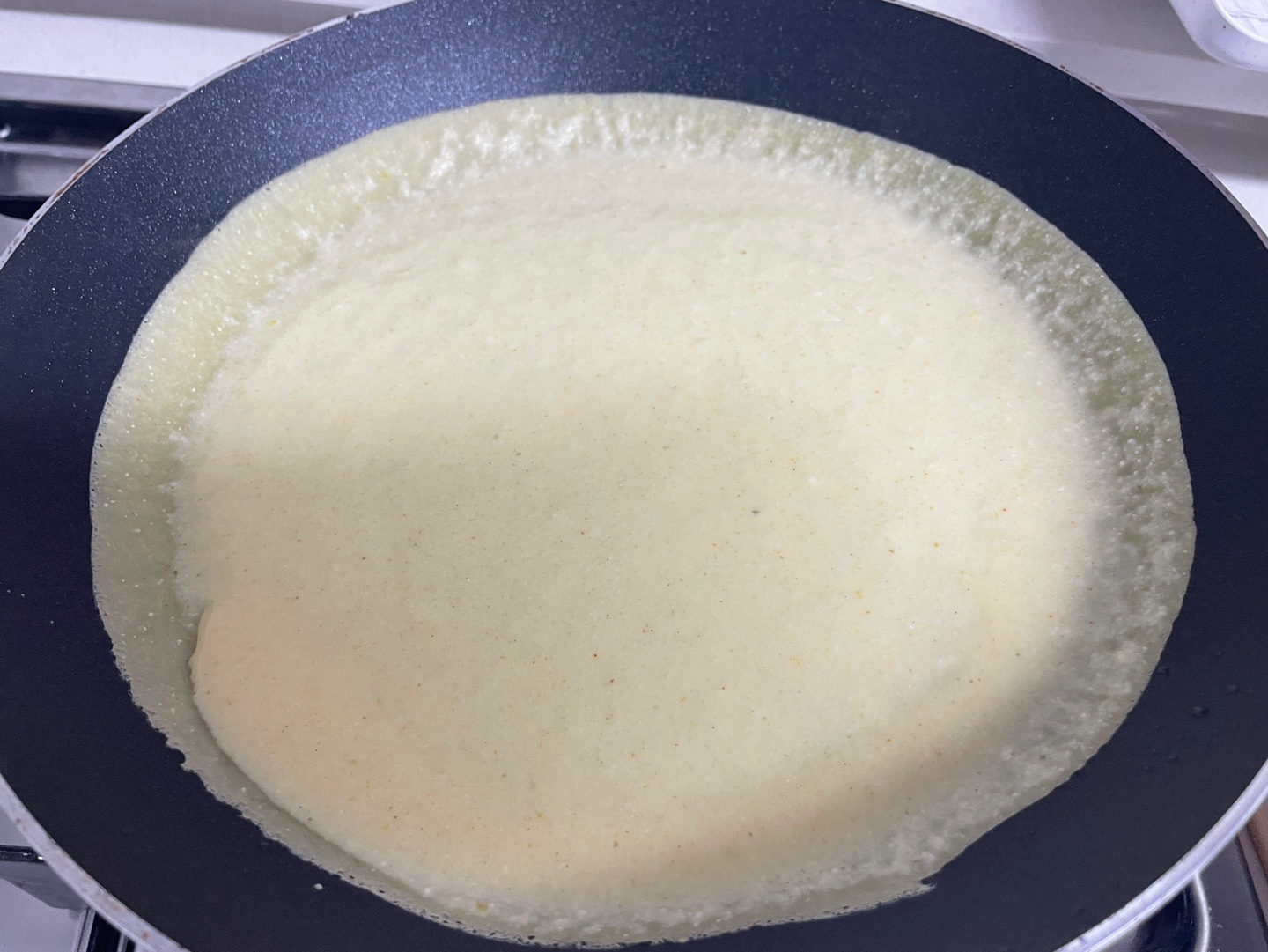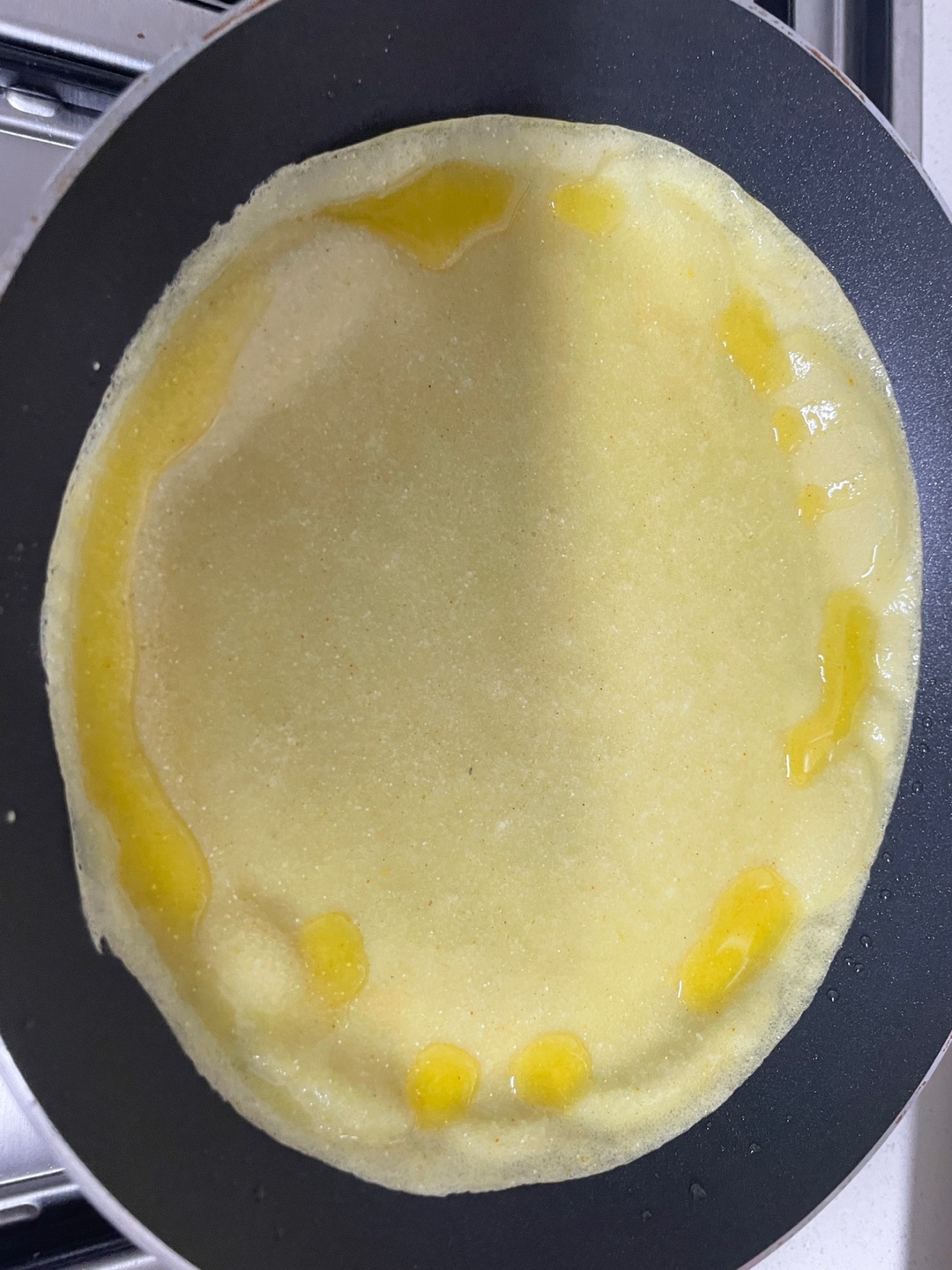 절대 국자로 펴지말고 후라이팬을 기울이기!!