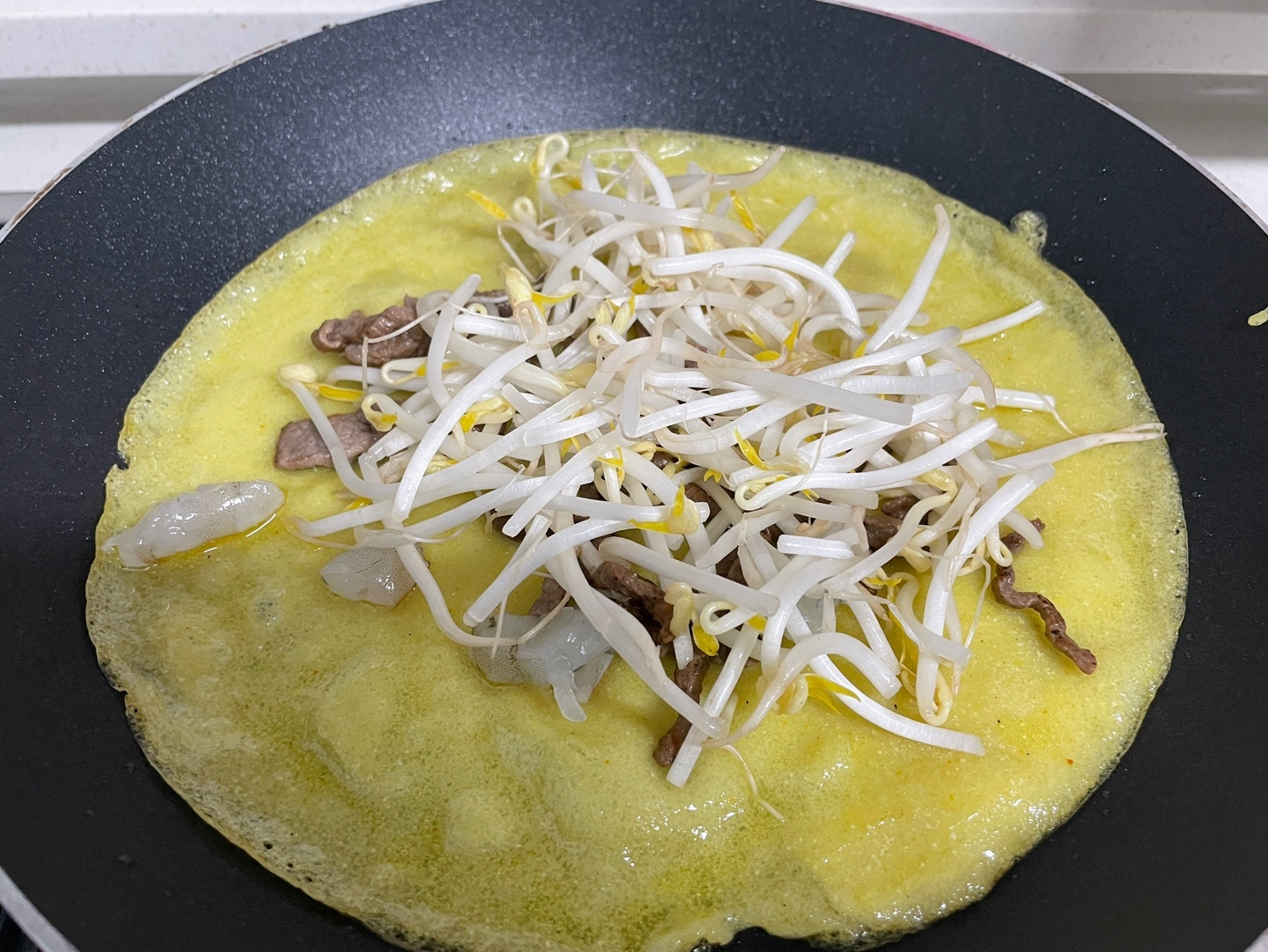 그리고 새우와 고기, 숙주나물, 양파를 약간 넣어줘!