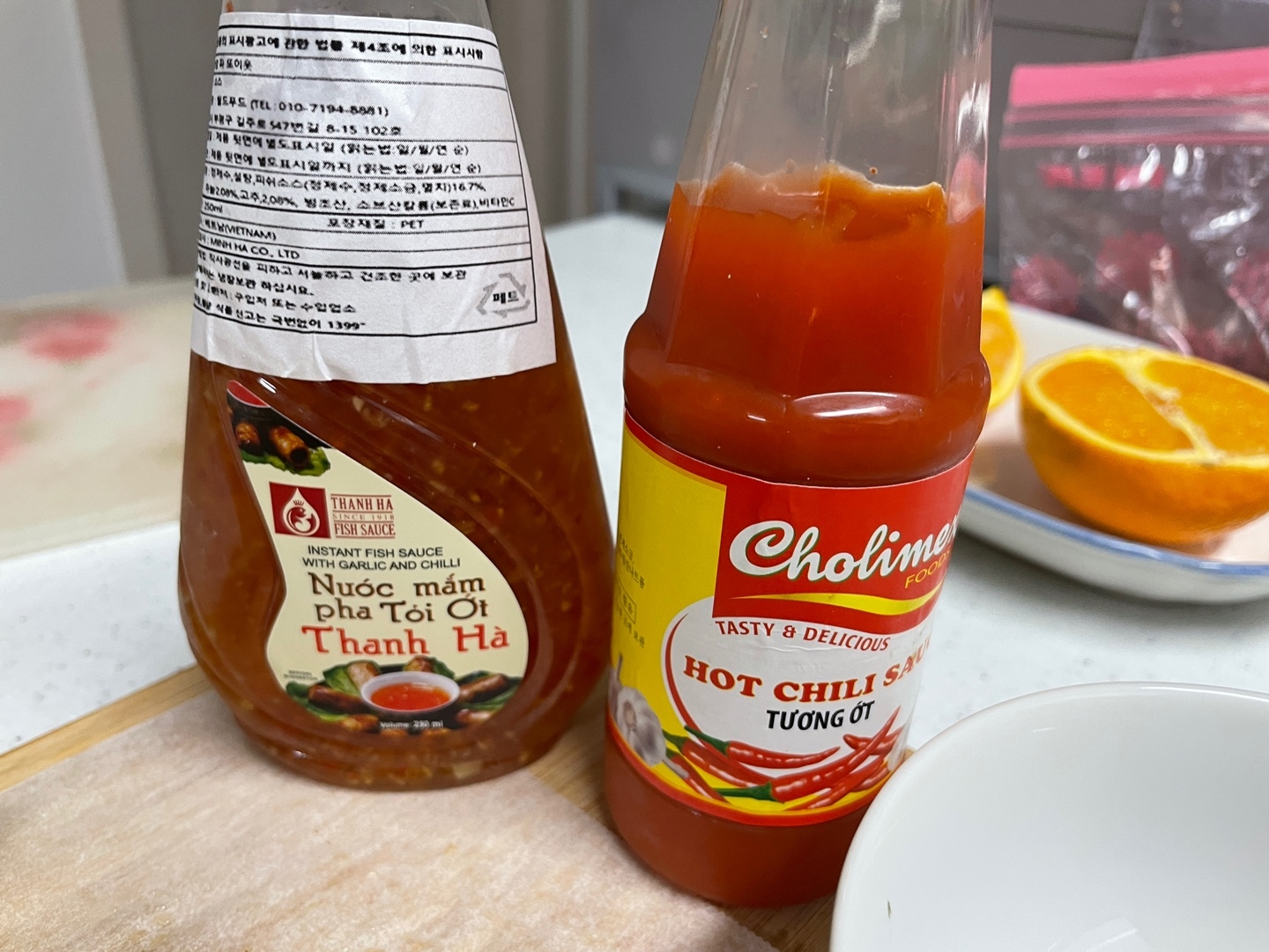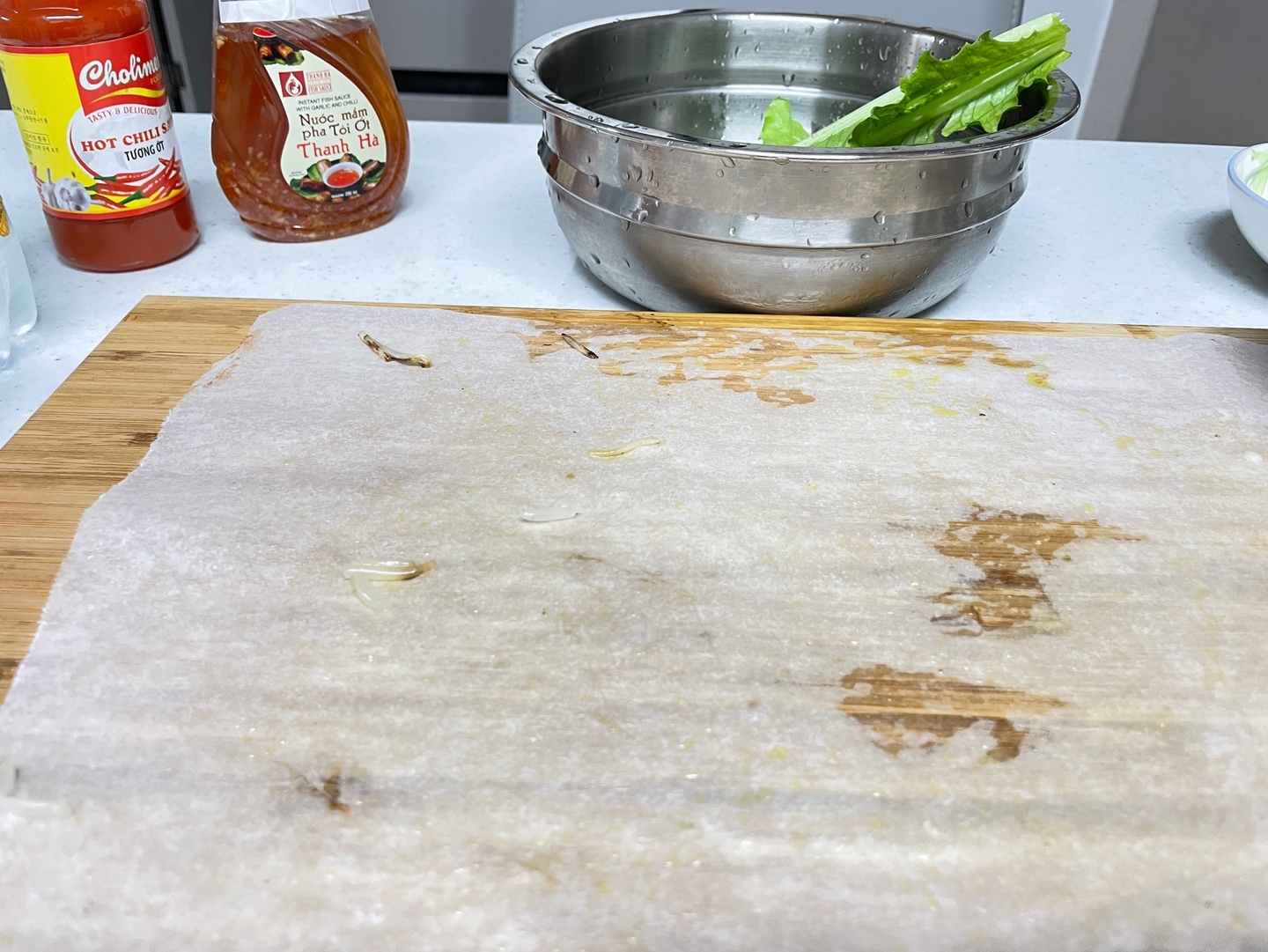 야채와 각종 소스들을 준비해줘!!