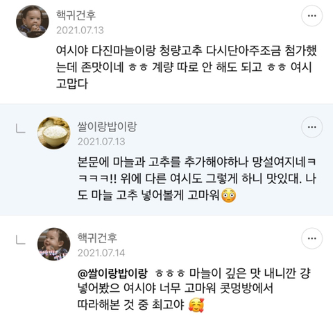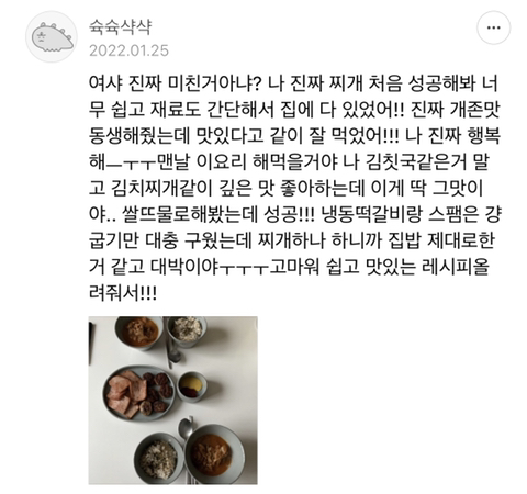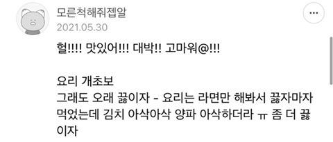작성자에브리띵띵 작성시간 26.04.04 처음 찌개해봤는데 너무 맛있다!! 고마워