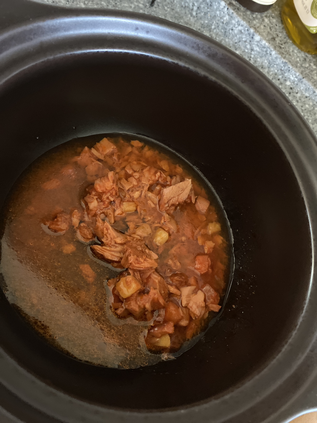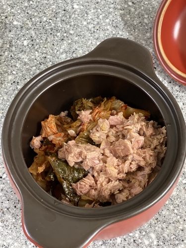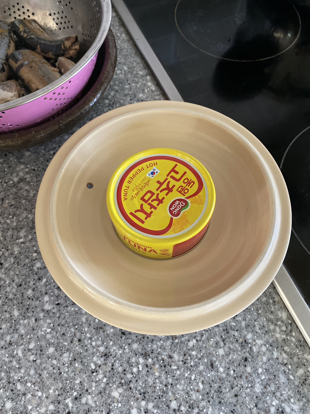 : 일반 참치 1캔 + 고추 참치 1캔 + (물 3캔 + 김칫국물 3 숟가락 + 김치 3캔)