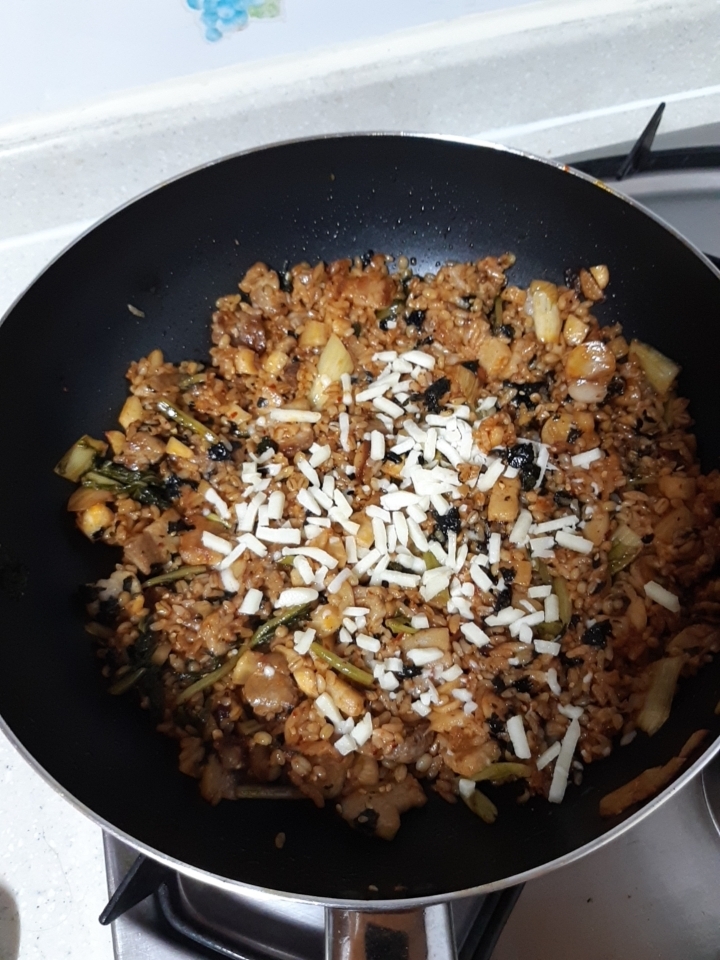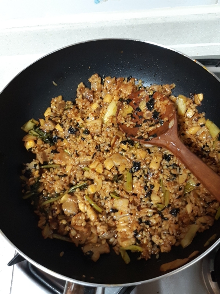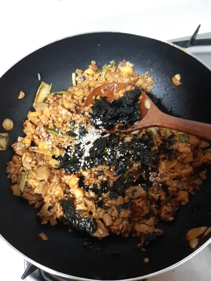 김뿌신거랑 참깨 넣고 볶아