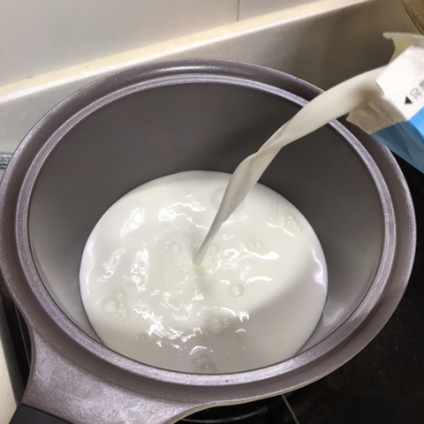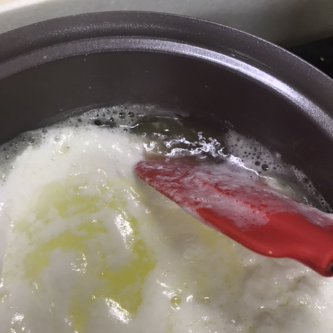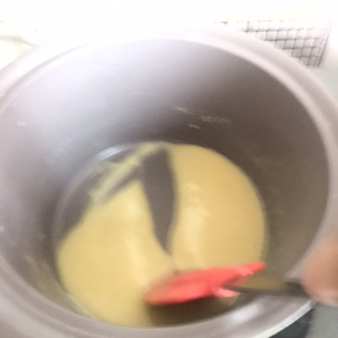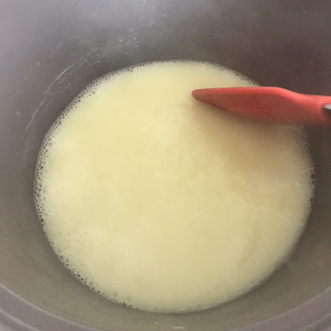 유청+생크림 혼합물을 계속 약불에 끓이면서 졸여주세요