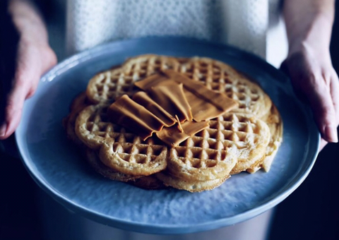 노르웨이에서 브라운치즈를 먹는 흔한 방법은 하트모양의 노르웨이 와플 위에 얹어먹기