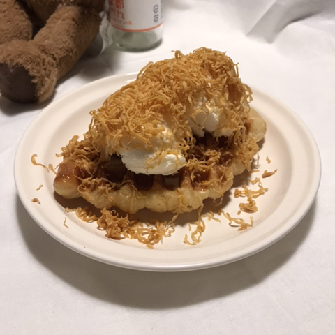 크로플에 아이스크림 올리고 뿌려먹으면 존맛임