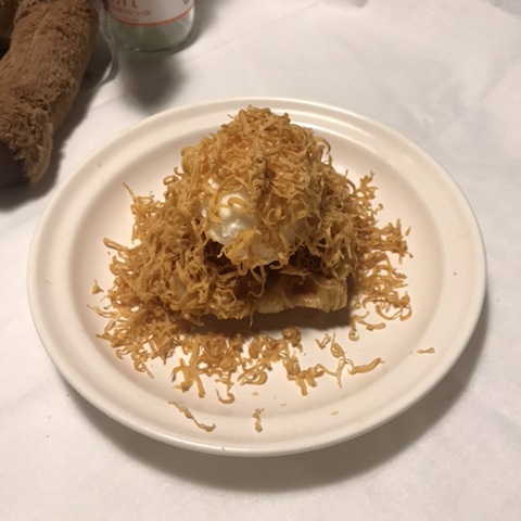그녀는 마을에 찾아온 손님에게 음식을 대접하게 되었는데, 마침 먹을거리가 다 떨어지고 유청과 우유에서 분리한 크림만 남아있었음