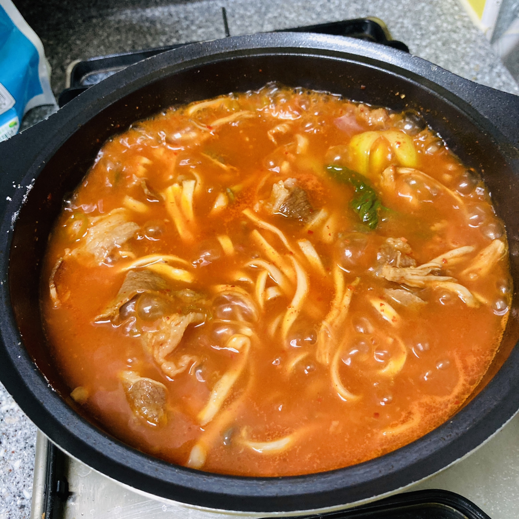 나는 면 안좋아해서 면 조금 넣어서 먹고 걸쭉해진 국물에 채소 다시 넣어서 끓이고 국처럼 밥이랑 먹었는데 그래도 맛있었음!