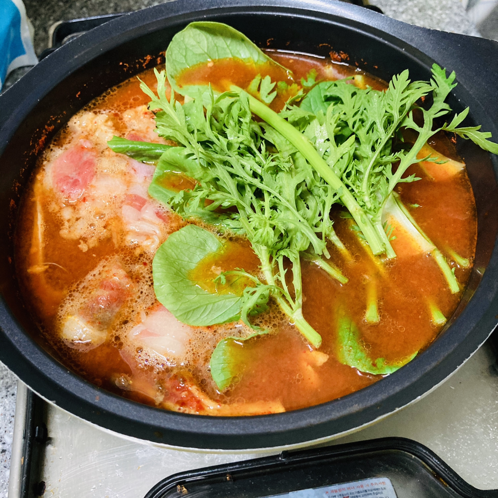 쑥갓(미나리 넣어도 됨, 생략 가능)