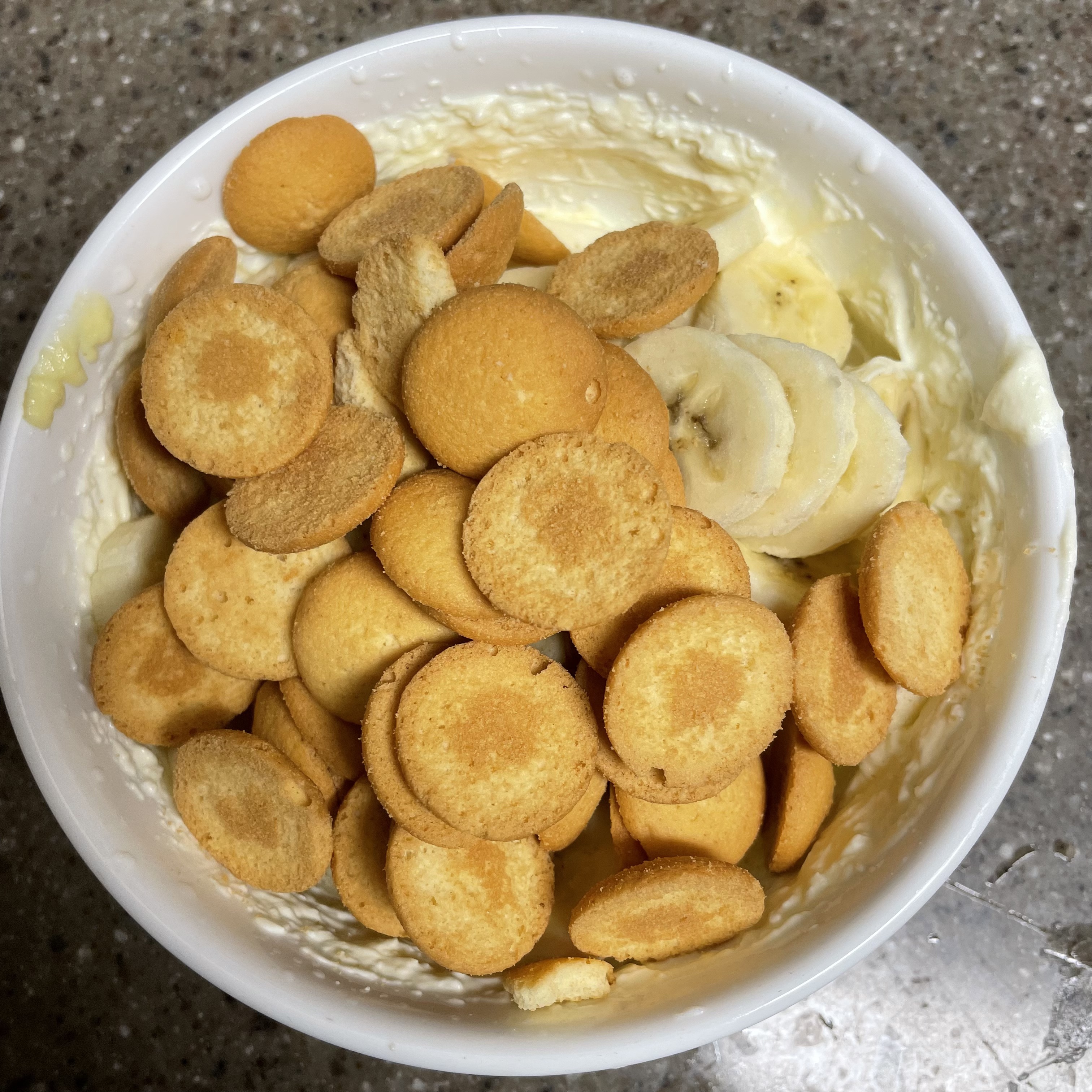 섞으면 요런 비주얼.. 바나나가 으깨지지않고 과자가 깨지지 않게 살살 섞어주세요