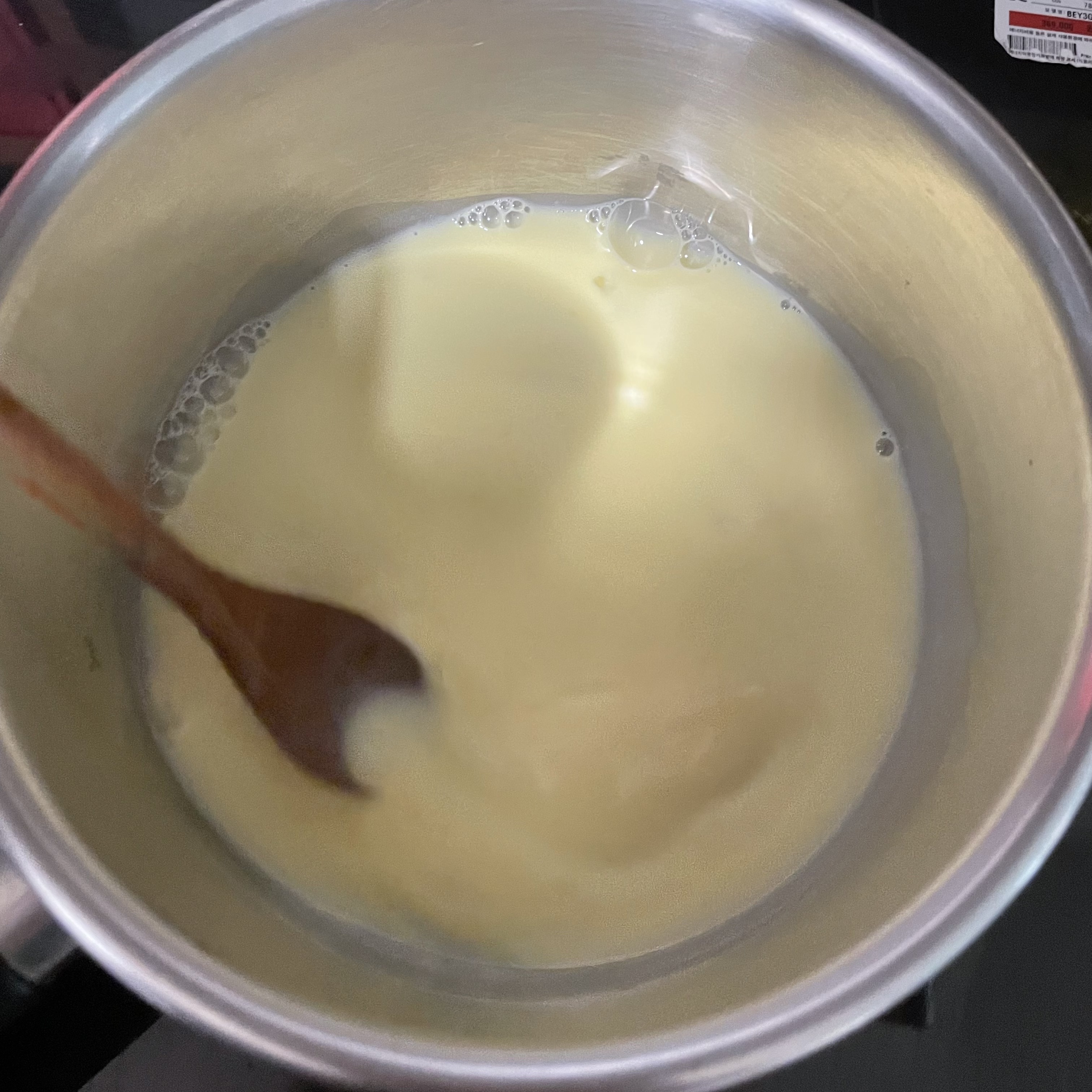 거품 안생기게.. 덩어리 안생기게.. 계속 저어주세요..