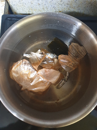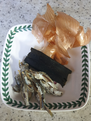 재료 : 육수용 - 양파껍질(선택사항), 다시마, 멸치