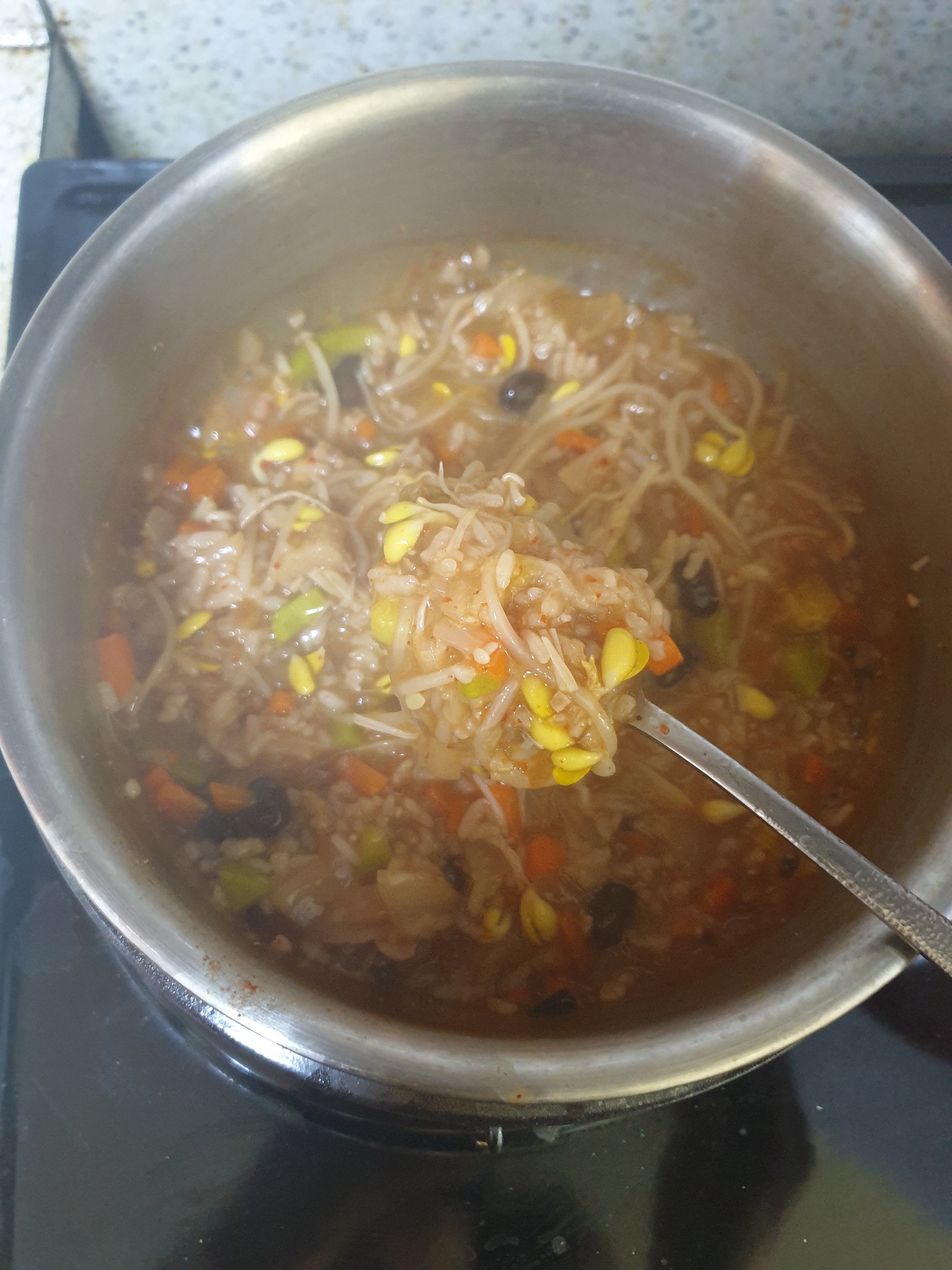 아 내가 끓여지는 동안 빨래 널고 온다고 안 섞어 줬더니 바닥이 좀 눌러붙음