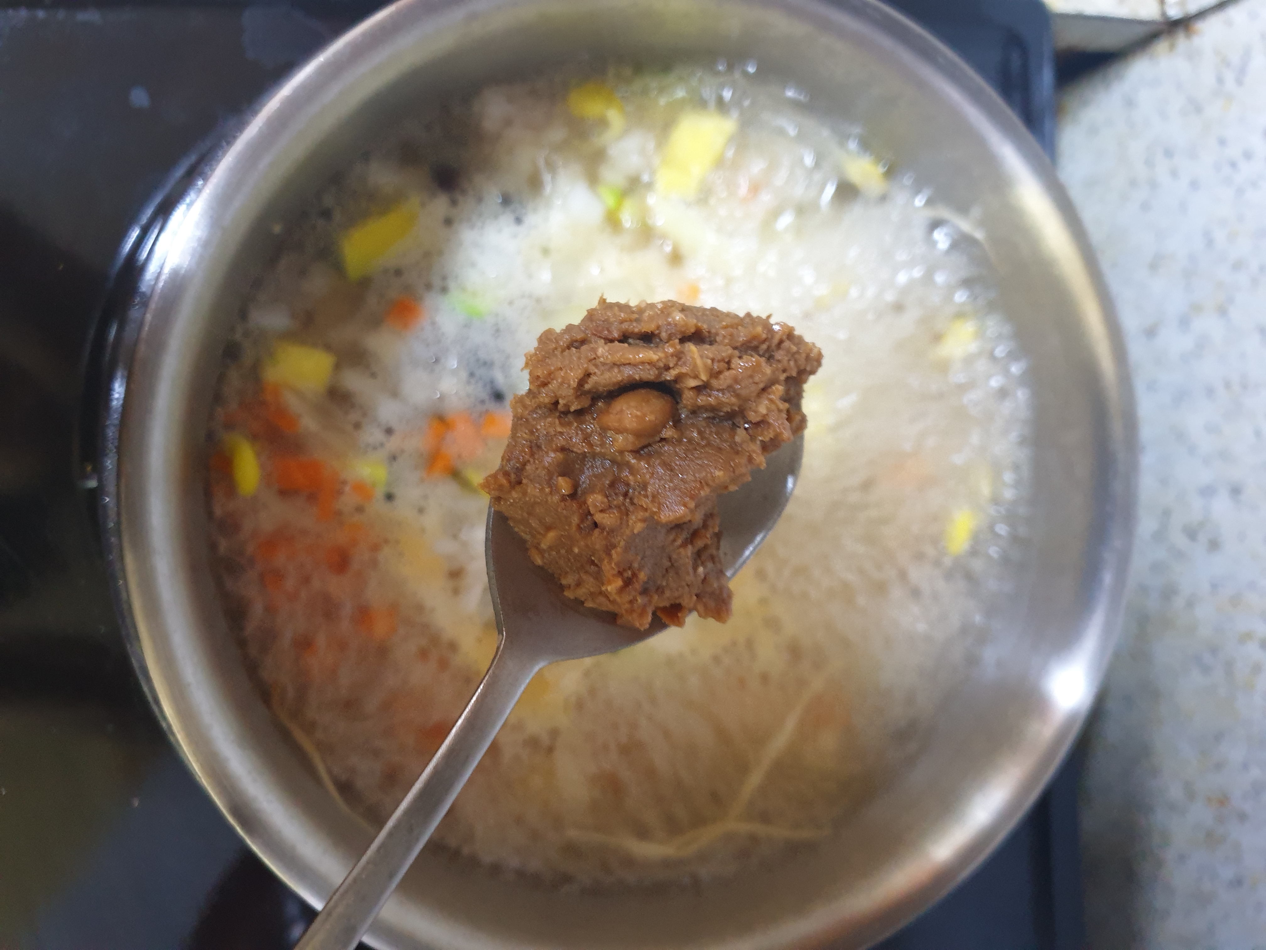 저거 인터넷에서 산 된장인데 좀 짜거든?.. 나 저만큼 넣고 조금 짜더라고 저게 아빠숟가락 평평하게 깎아서 한스푼 반정도 될거같은데 일단 여시들은 저기에 2/3만 넣어!!!!