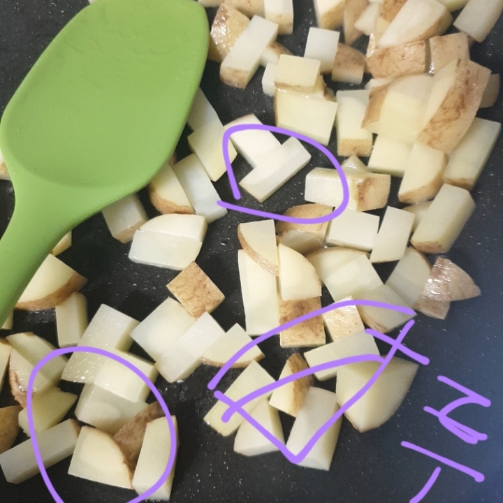 *다른 재료에 비해 감자가 늦게익는 편이니까 먼저 넣고 볶아줘~~