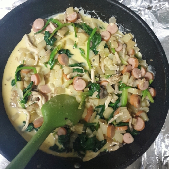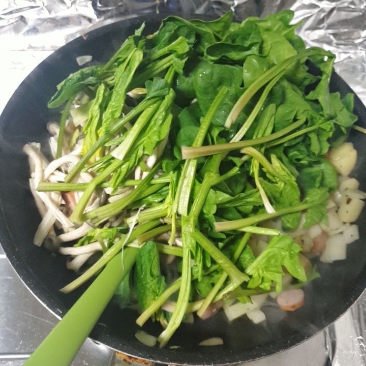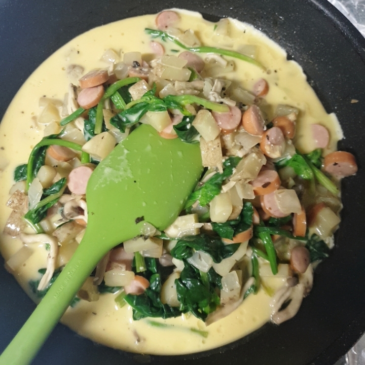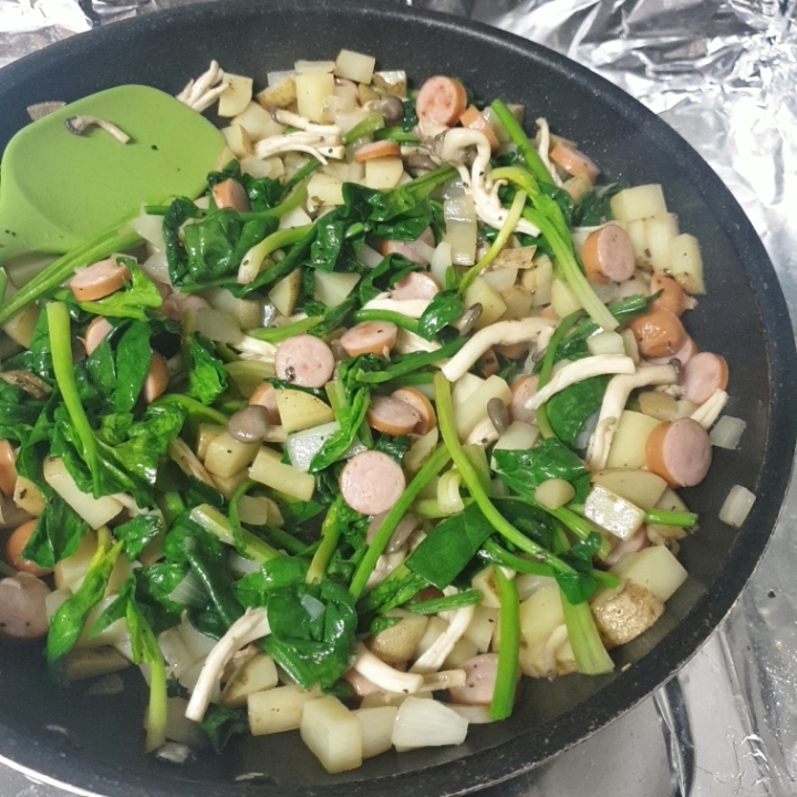 *감자, 시금치는 필수재료! 버섯이항 햄은 종류 상관없이 취향대로 준비해줘