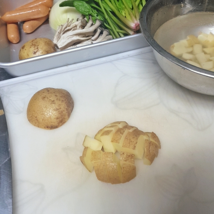감자는 잘 안익는거 감안해서 작게 썰어 물에 담궈놓기