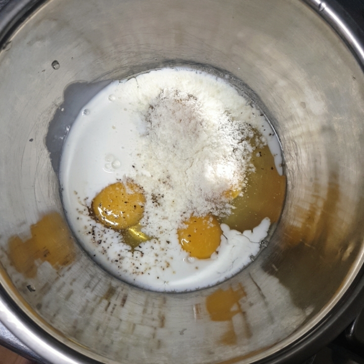 계란 4알+우유 종이컵기준 반컵정도+소금+후추