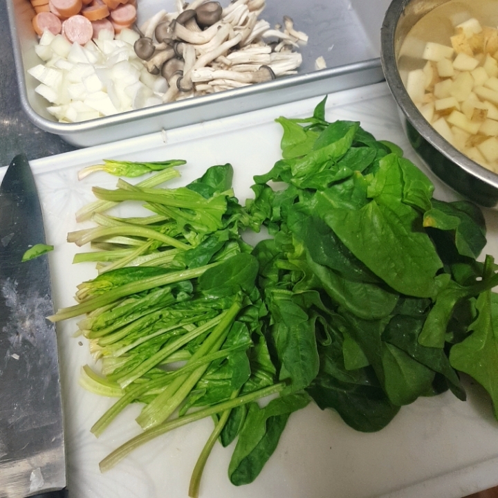 시금치도 뿌리 잘라내고 원하는 크기로 썰어줘
