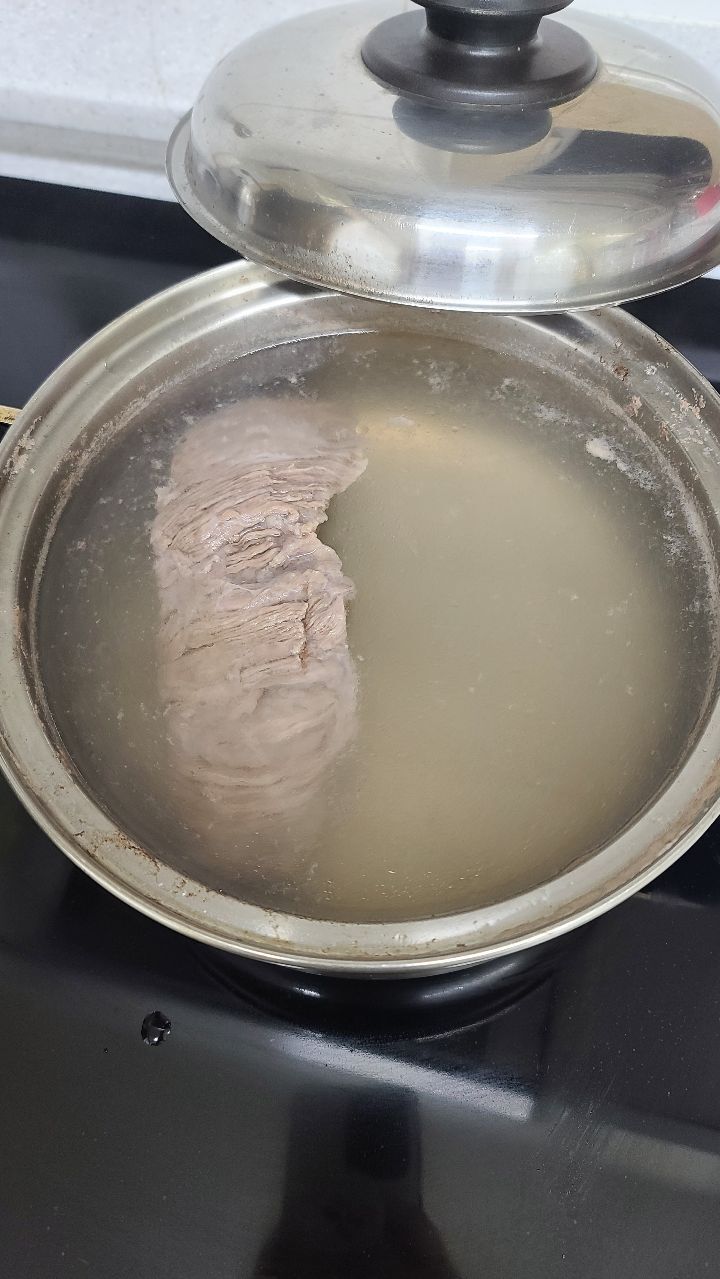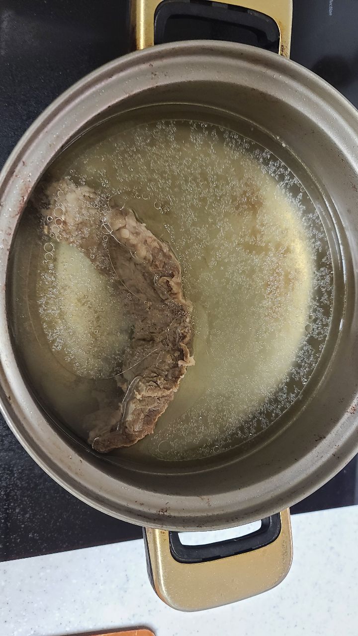 2. 냄비에 물담아서 양지혹은 사태를 넣고 푹끓여준다(최소 1시간.양지는 오래끓일수록 부드럽고 맛있음)