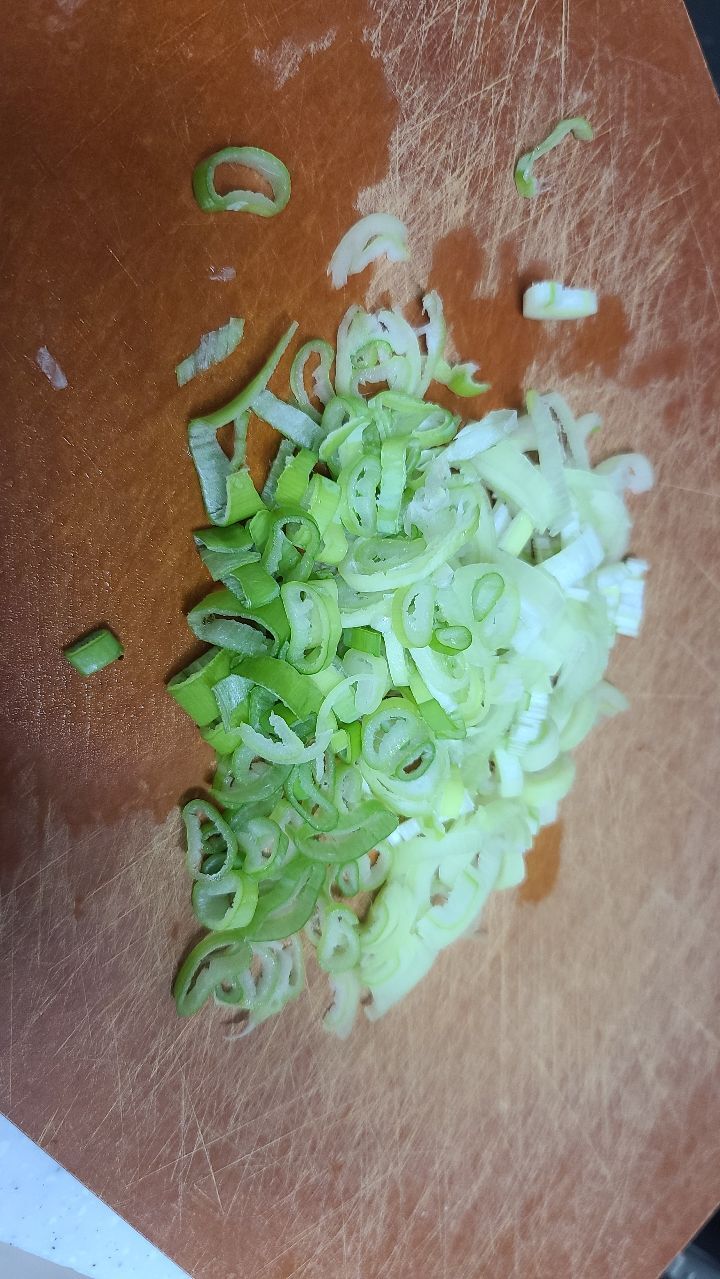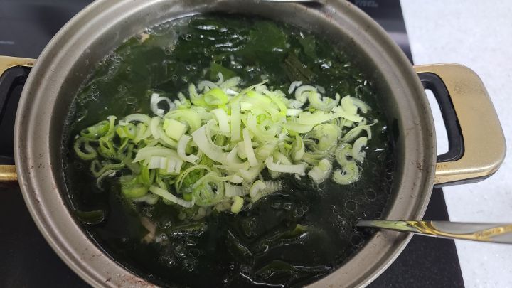 8.파 썰어줘 두꺼워도 상관없음(엄마가 파,양파 싫어해서 잘게썬것)파넣지말아요~~~파가 미역영양 흡수방해한대여