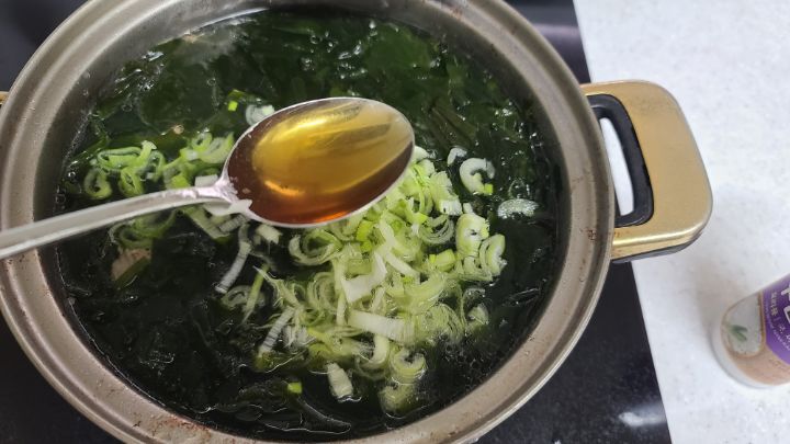 16.마지막에 참기름 한스푼넣고 5분끓이기