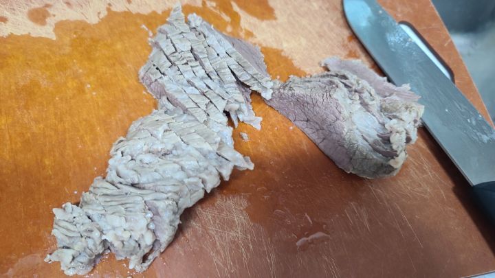 5.미리끓여둔 육수에있던 고기건져서 잘라주기(개인적으론 결반대로잘라야 부드러운데 상관없음 걍잘라줘)