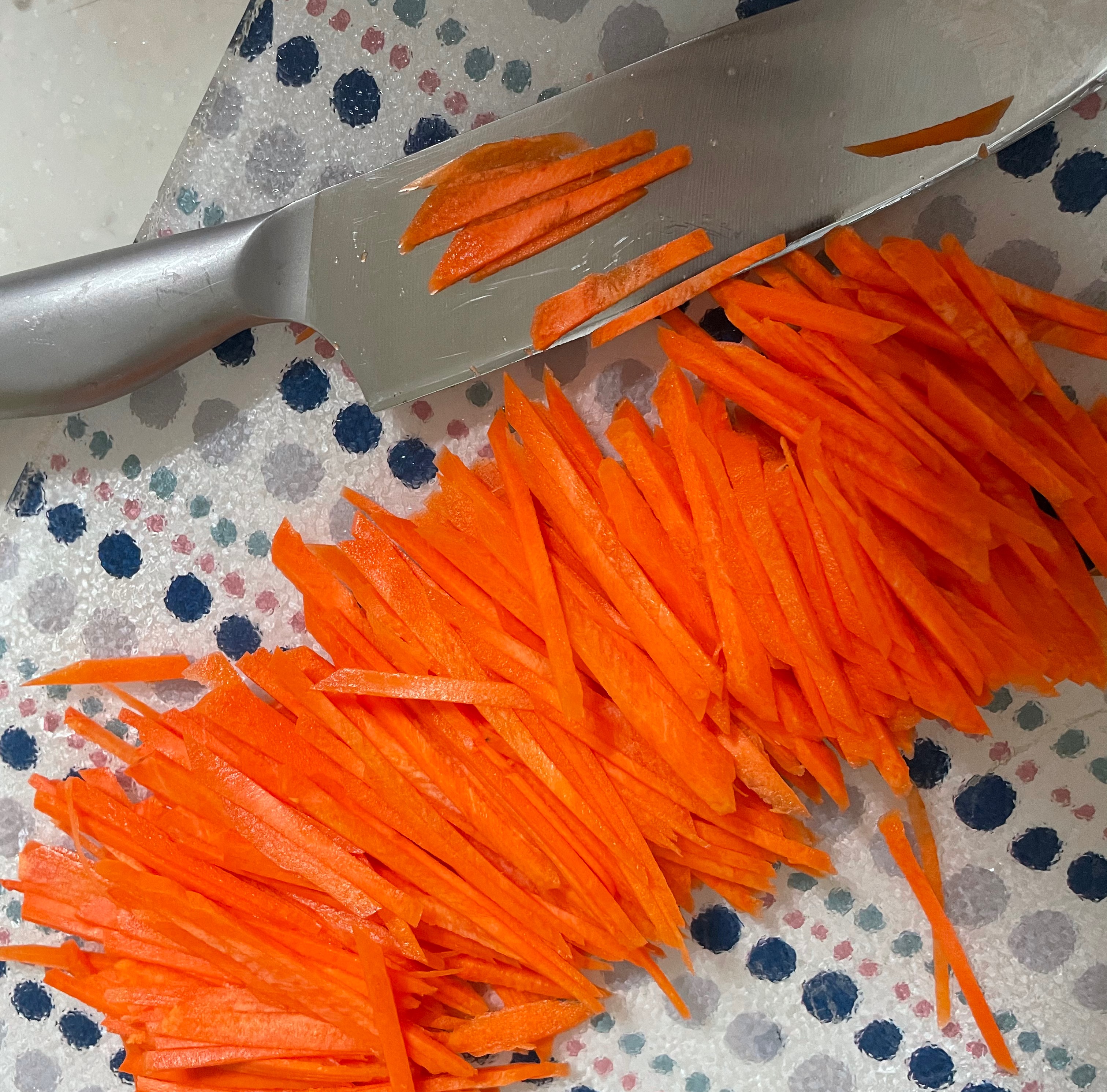 세척한 당근은 곱게 채 썰어줘