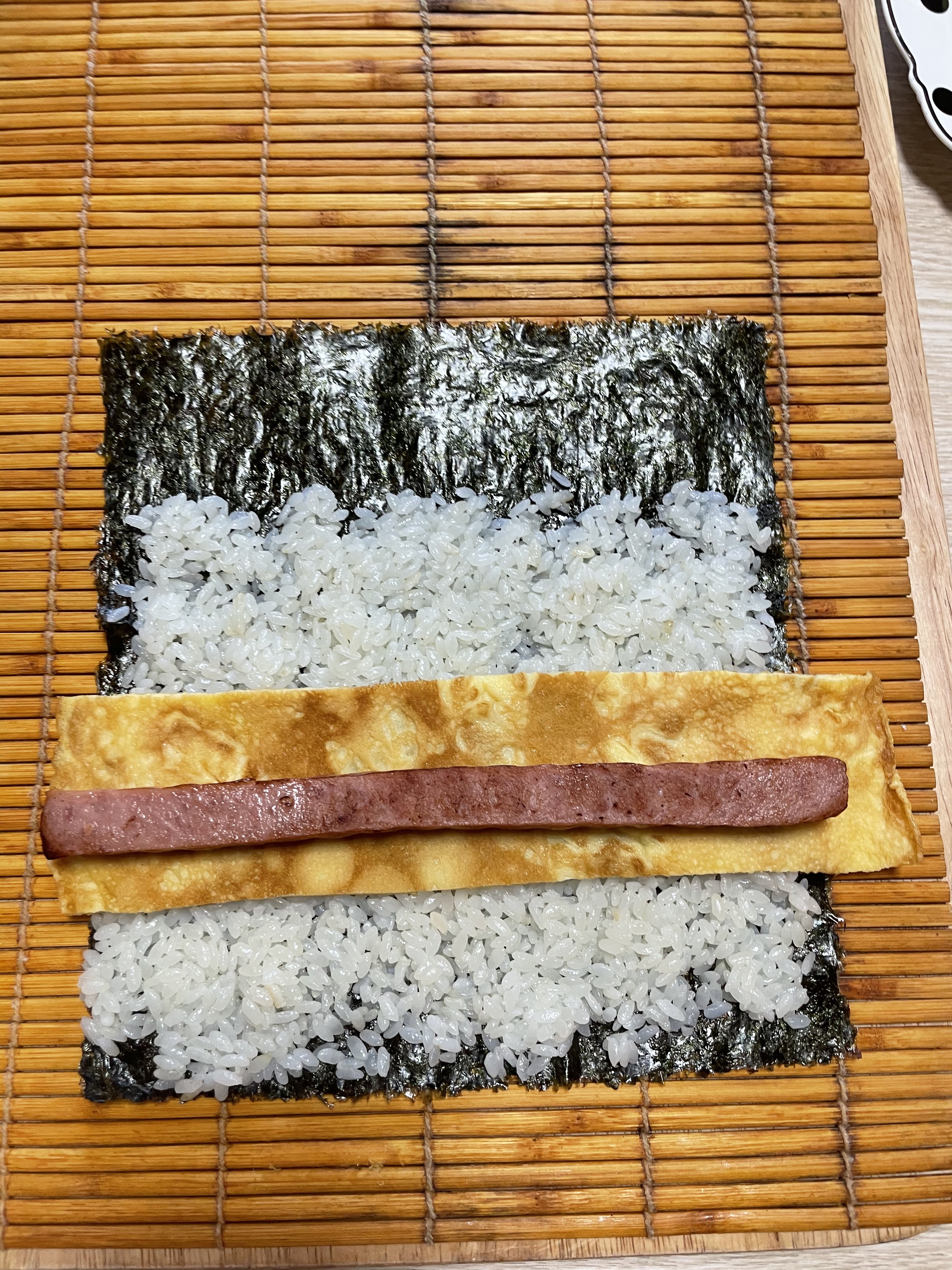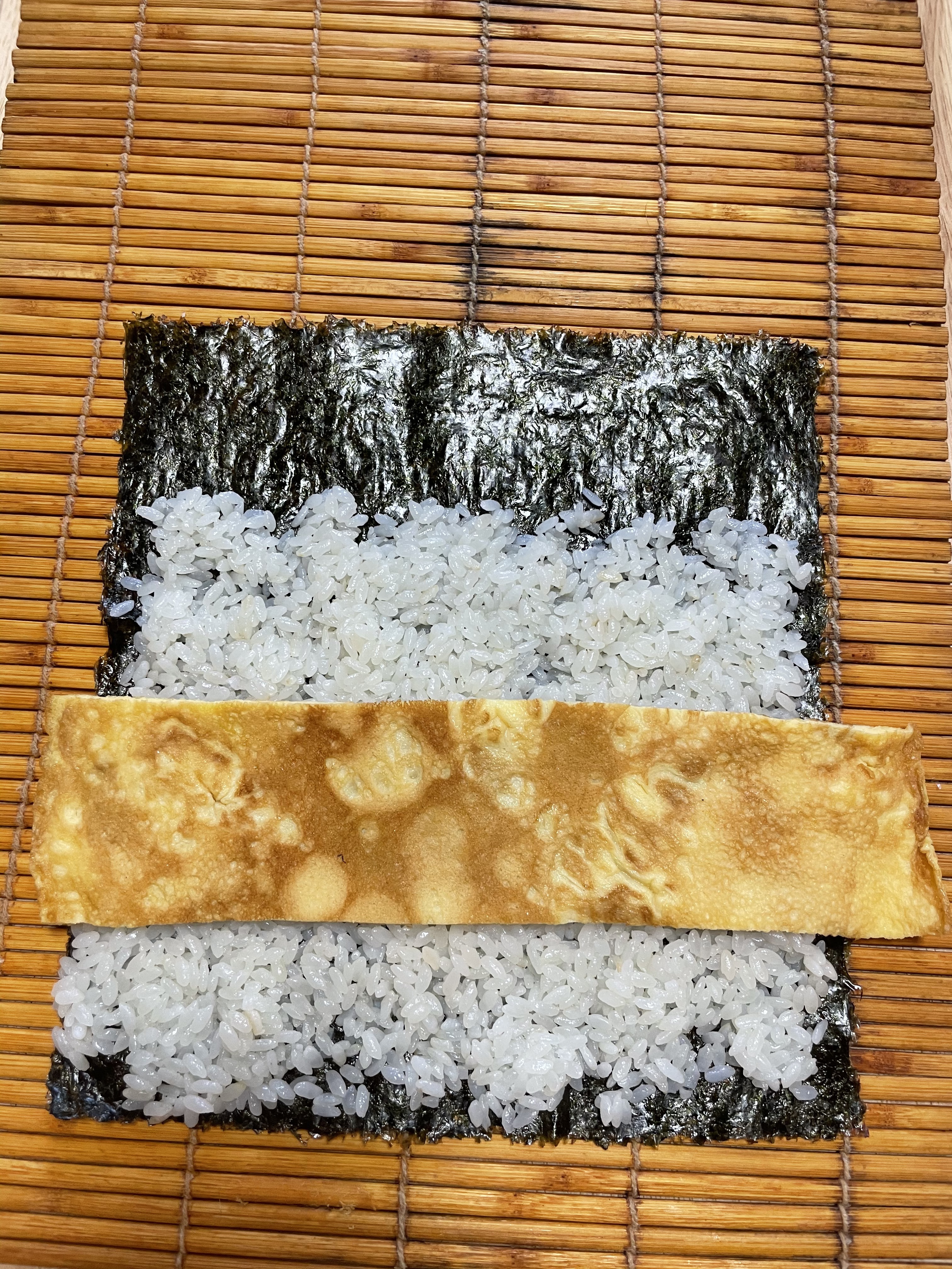 넓게 자른 달걀 먼저 올려놓기!