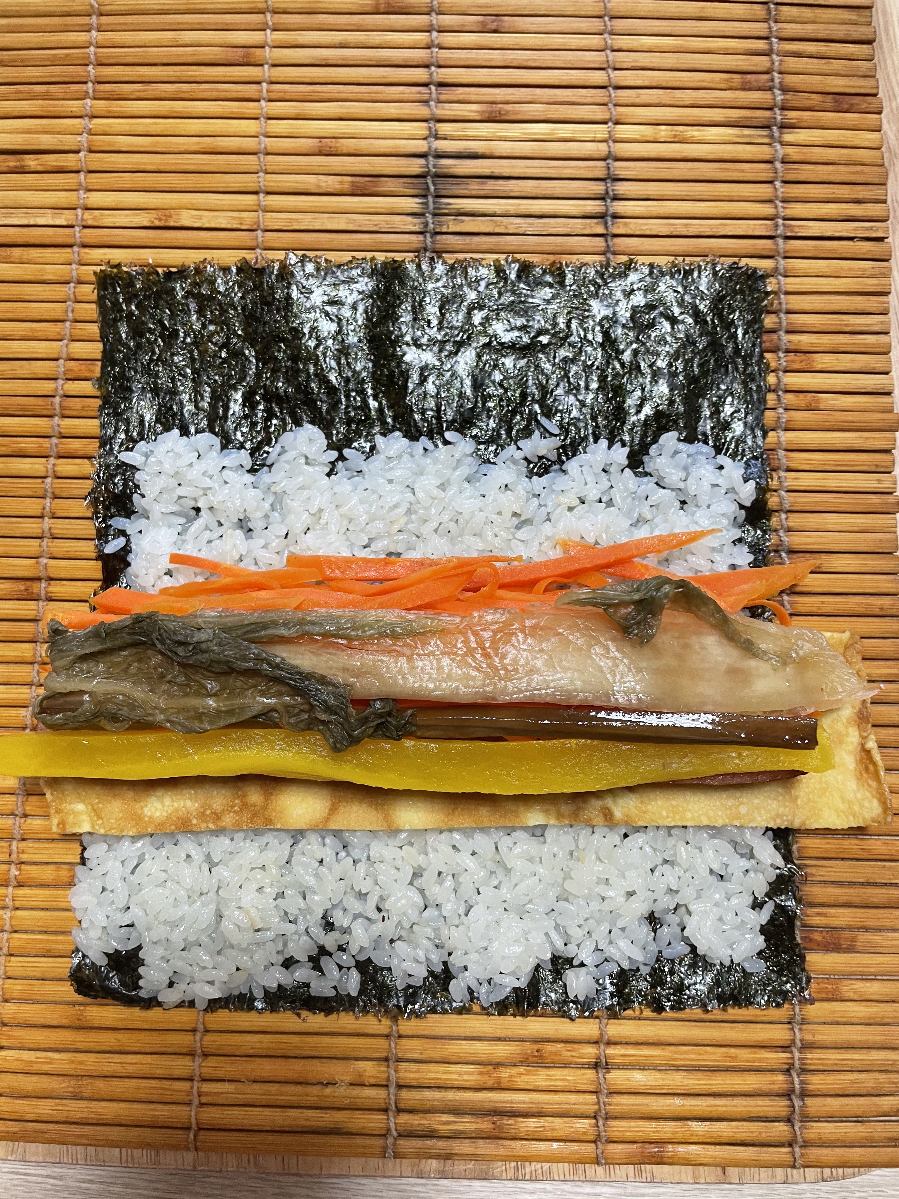 난 요즘 시금치 금값이라 안 넣었고 게맛살 싫어해서 뺏음 ㅎ
