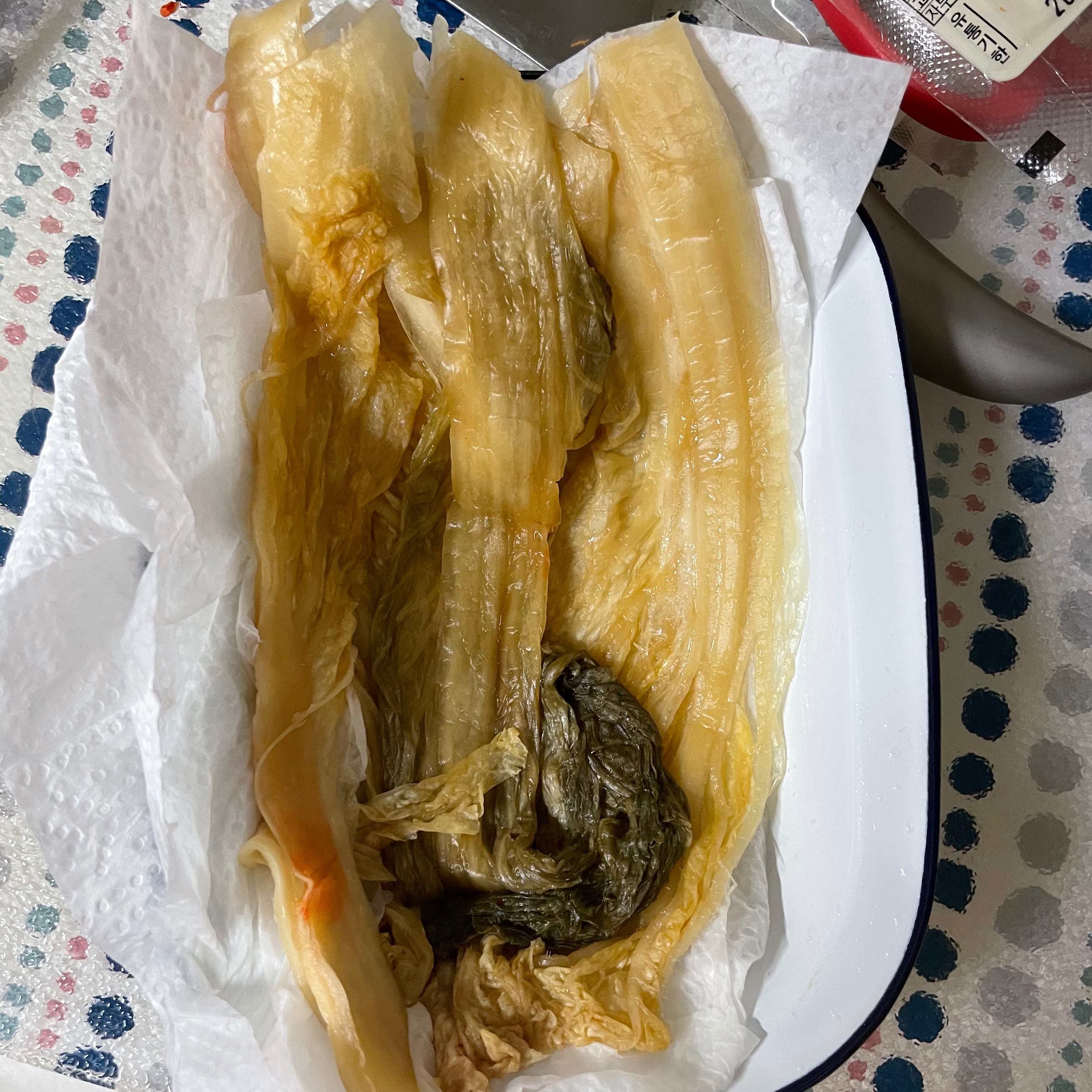 배추 김치는 물에 헹궈서 길게 찢어서 준비하자!