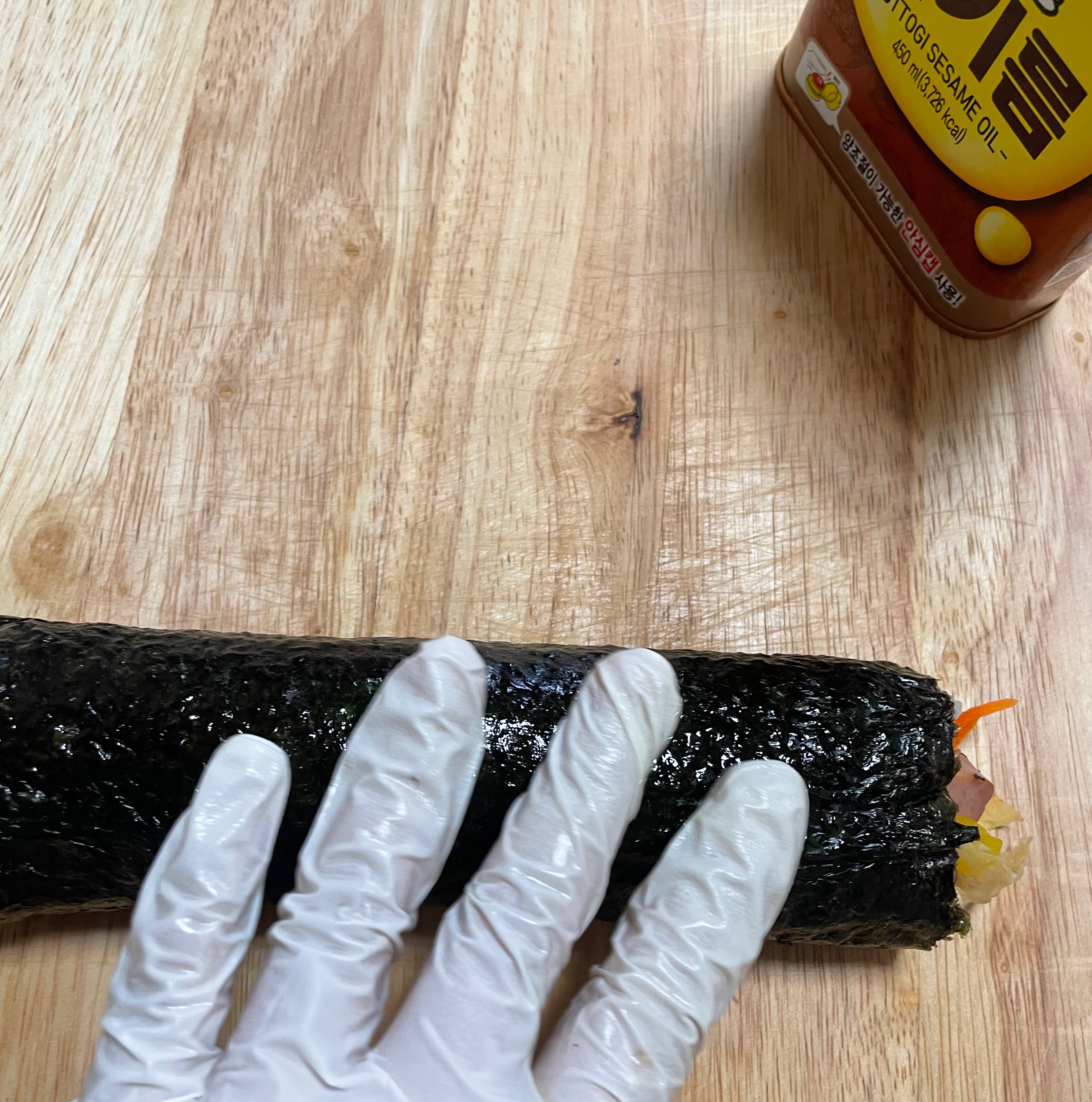 김밥 말 때 처음에 재료를 한큐에 덮는나는 생각으로 김을 들어올리기!!!