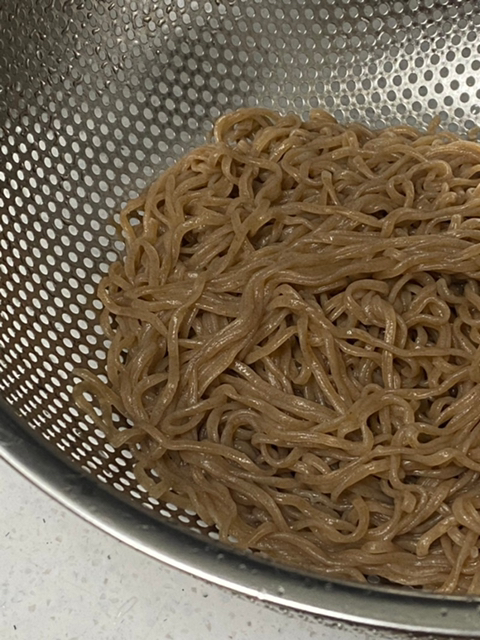 1. 메밀소바 면을 레시피대로 4분 30초를 끓이고 헹궈준다