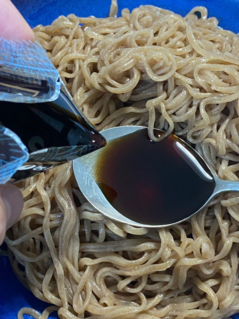 2. 메밀소바 액상스프를 반정도 넣어준다.