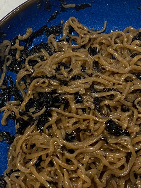 준비물 : 메밀소바 라면 (면, 액상스프), 들기름(들깨가루), 김가루