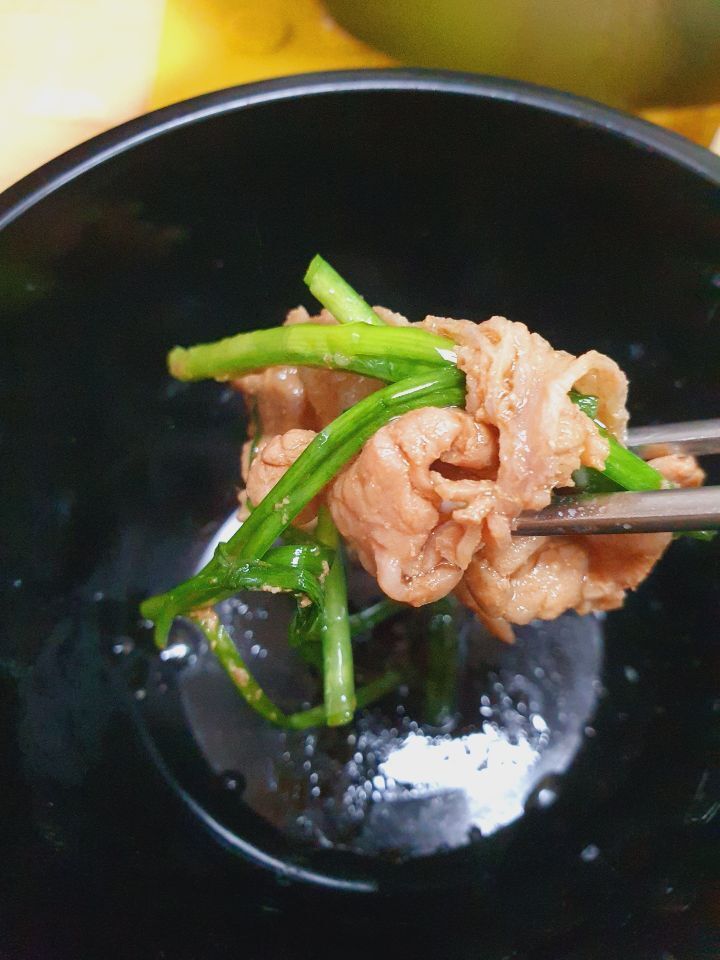 야들야들 먹기 좋게익은 채소와 고기를 얹어서